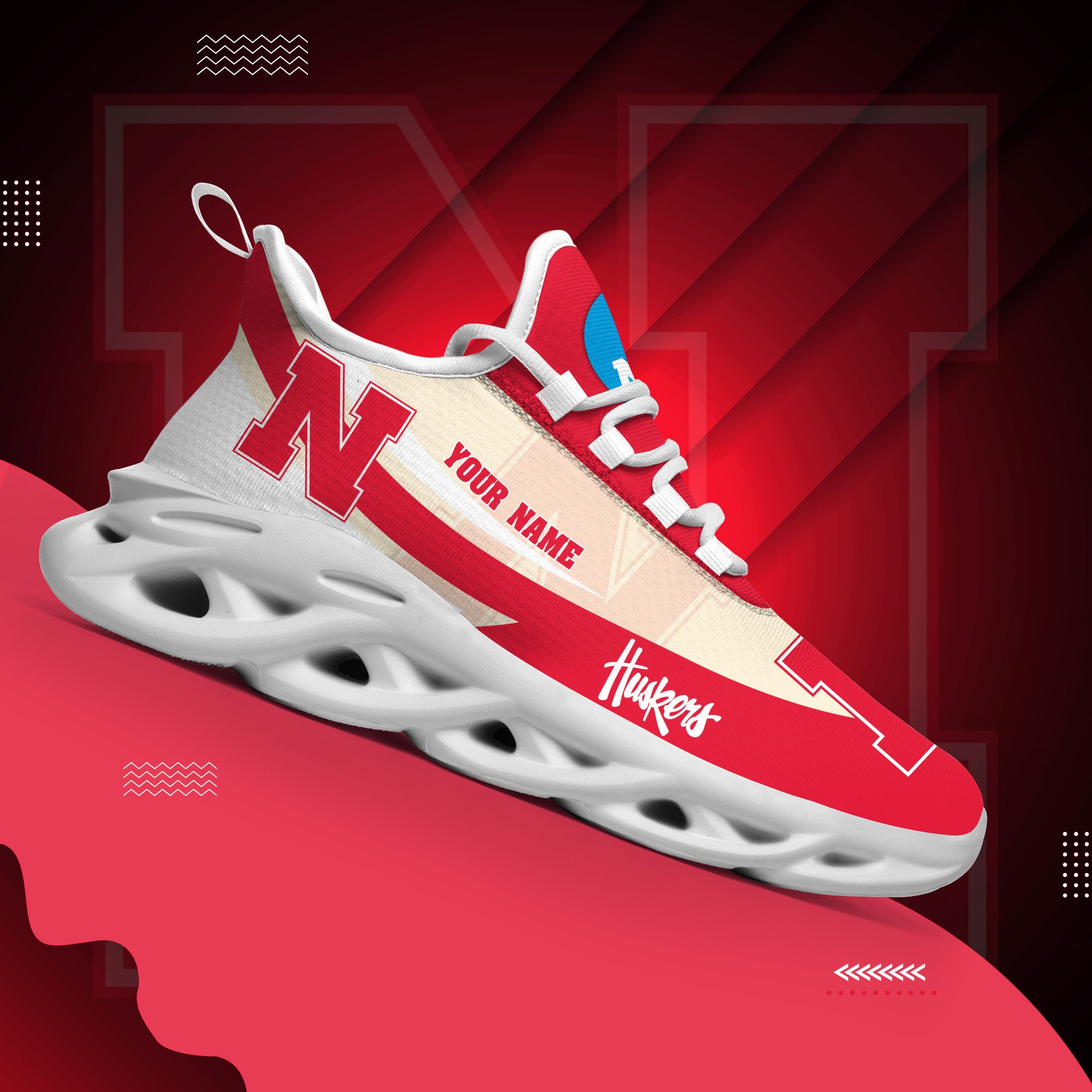 Nebraska Cornhuskers White Max Soul Shoes 2026 Versions Custom Your Name, Sports Gift For Fan PH019