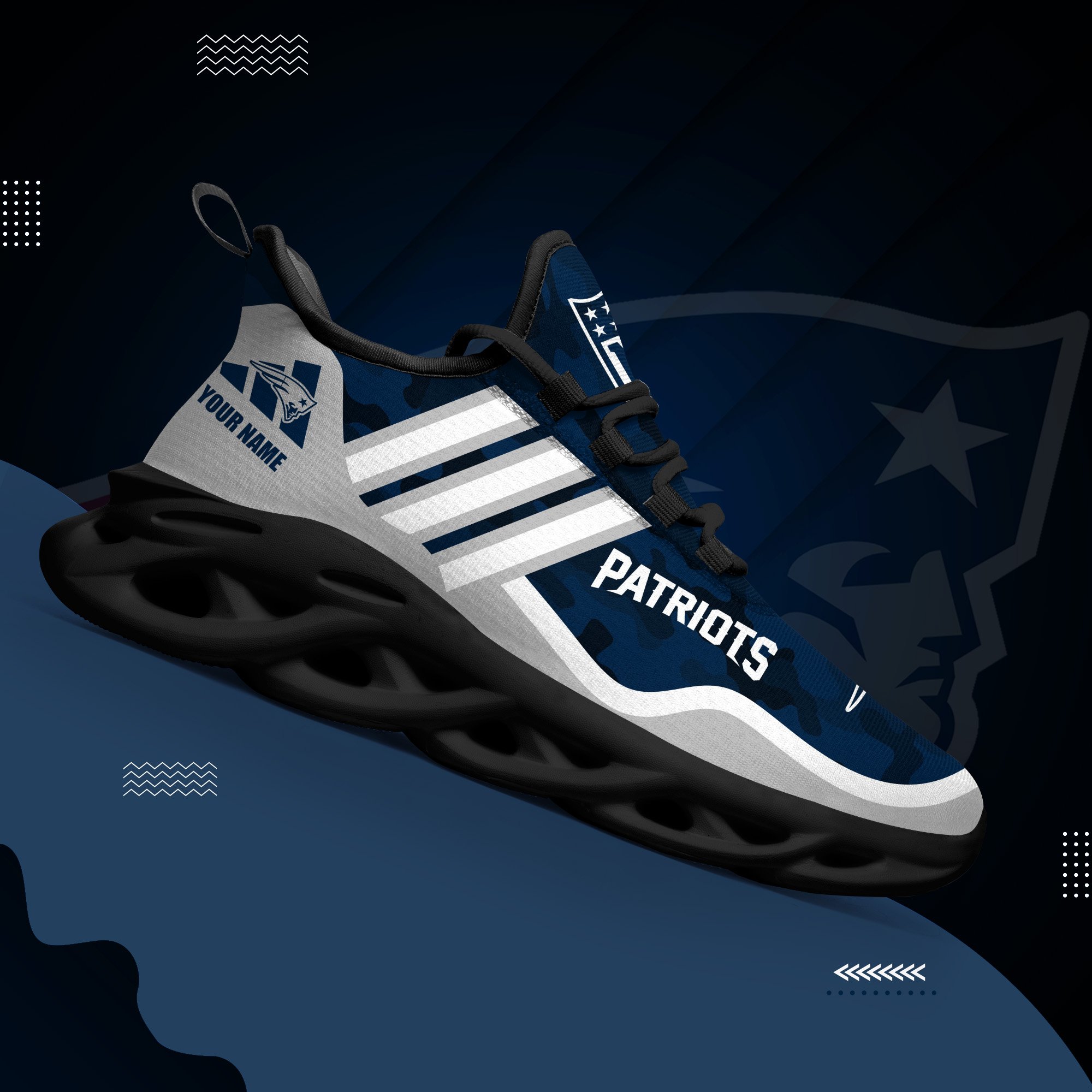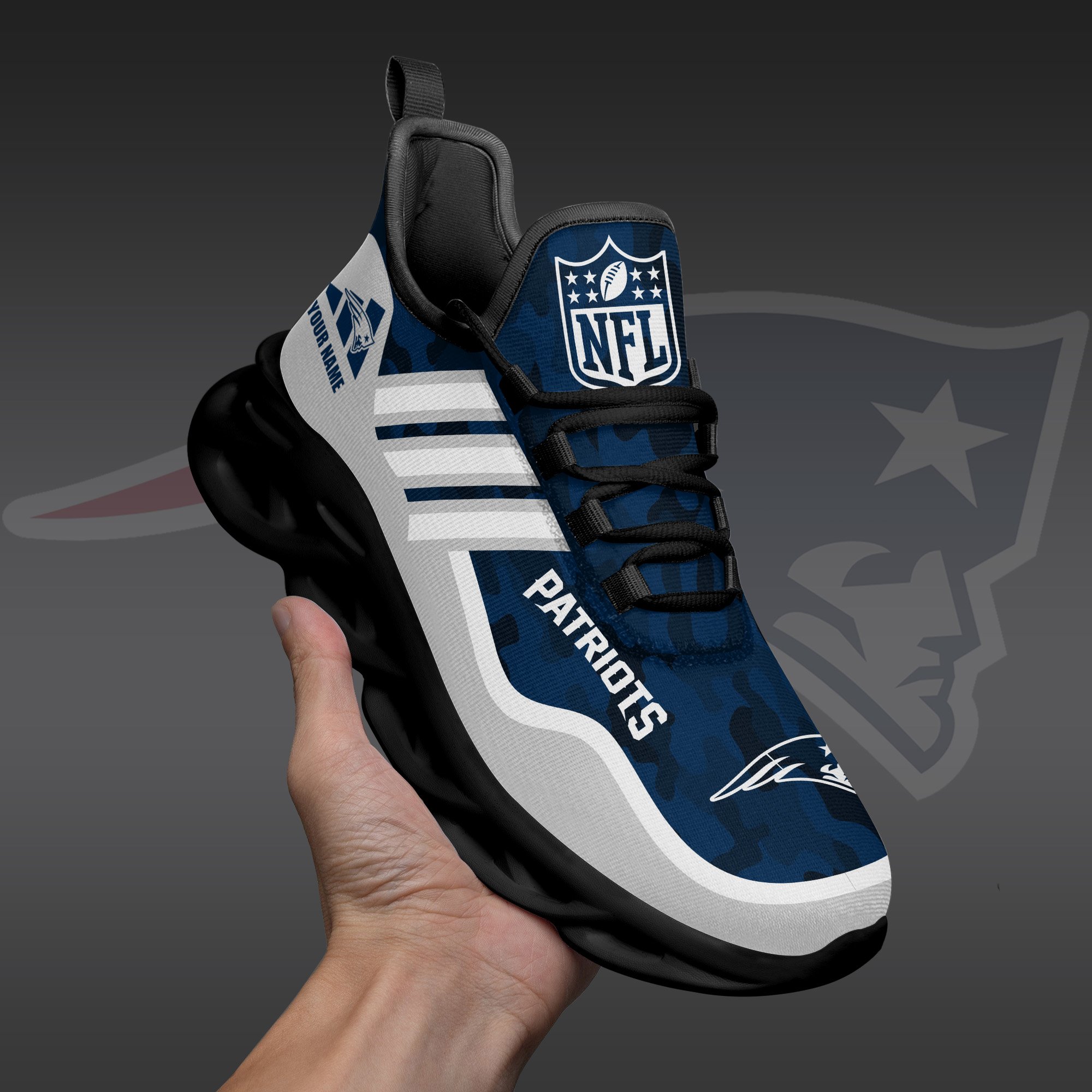 New England Patriots Black Max Soul Shoes 2026 Versions Custom Name 430
