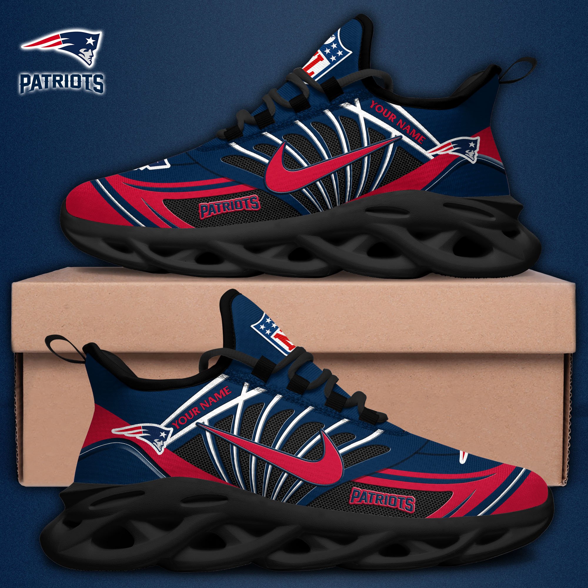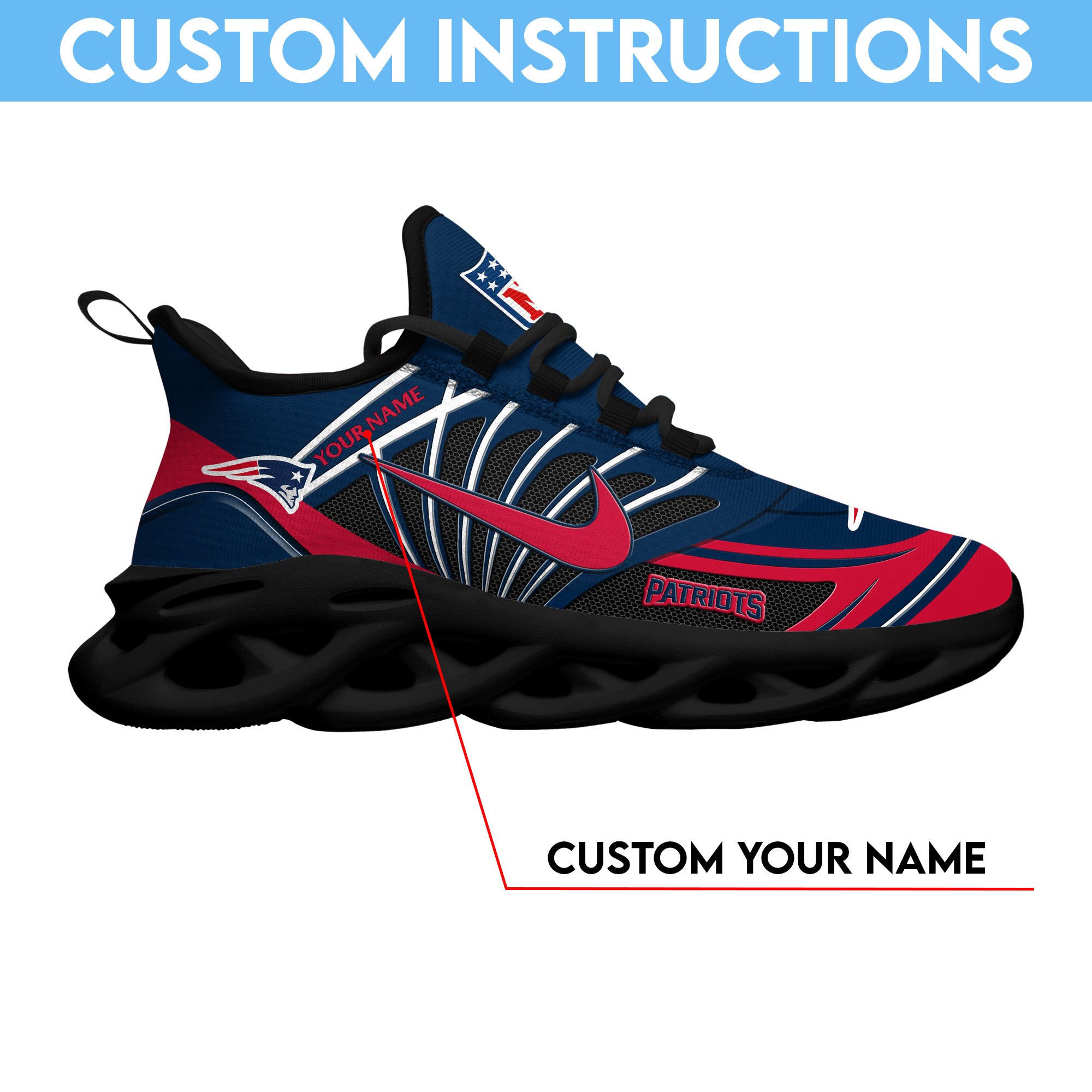 New England Patriots Black Max Soul Shoes 2026 Versions Custom Name 898