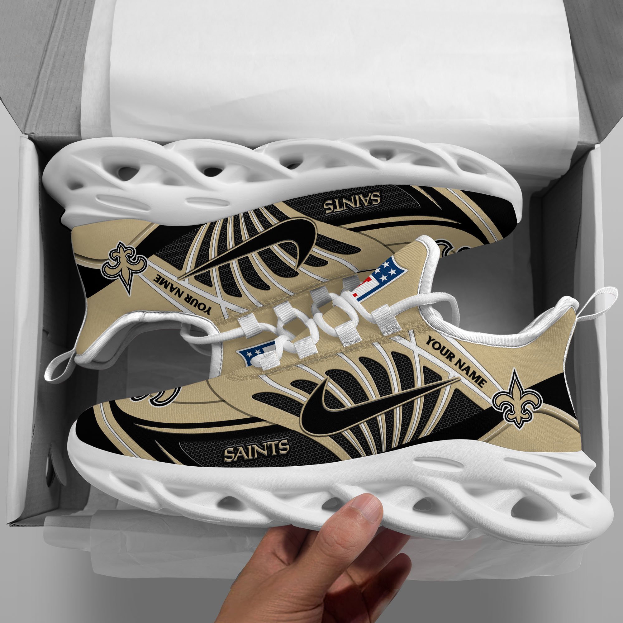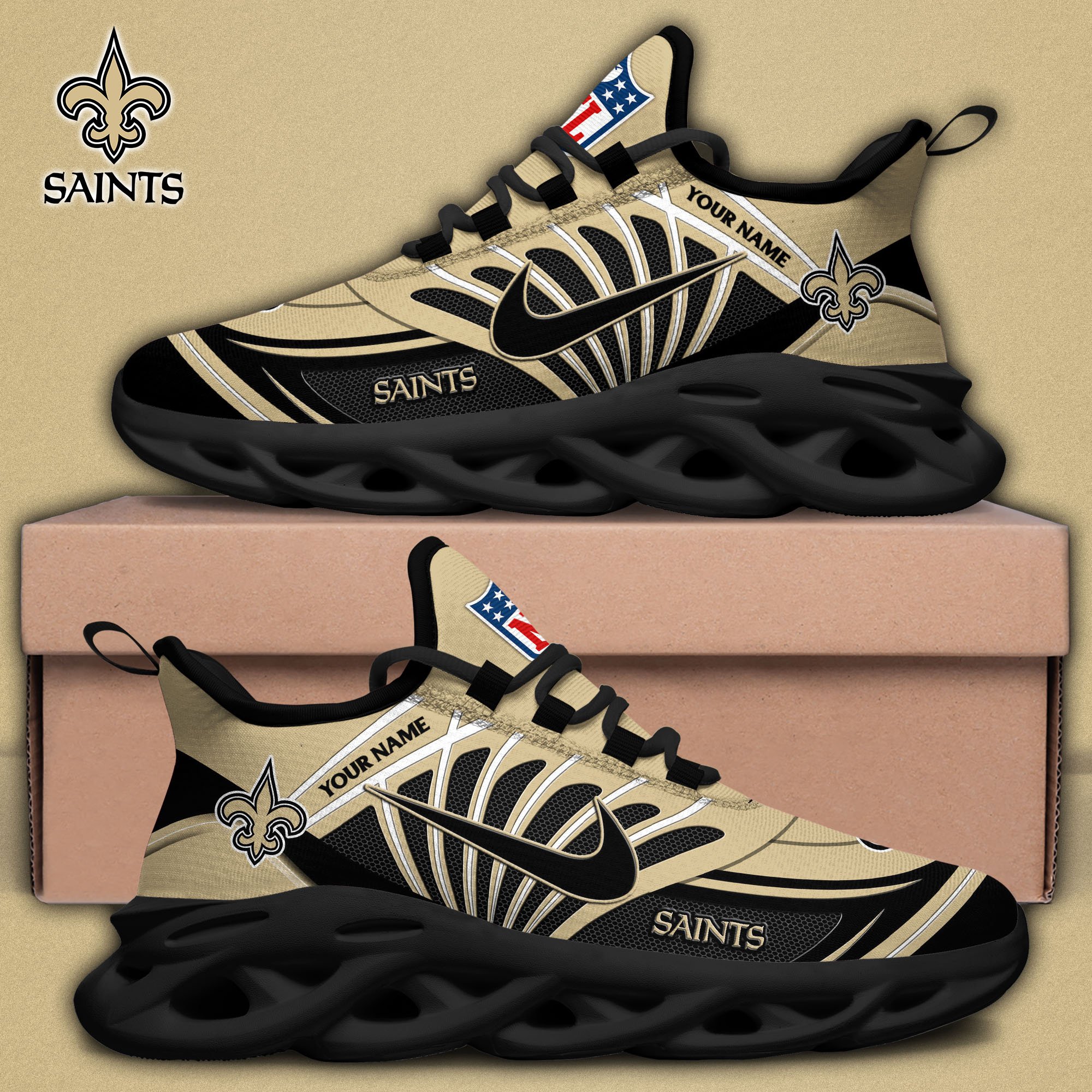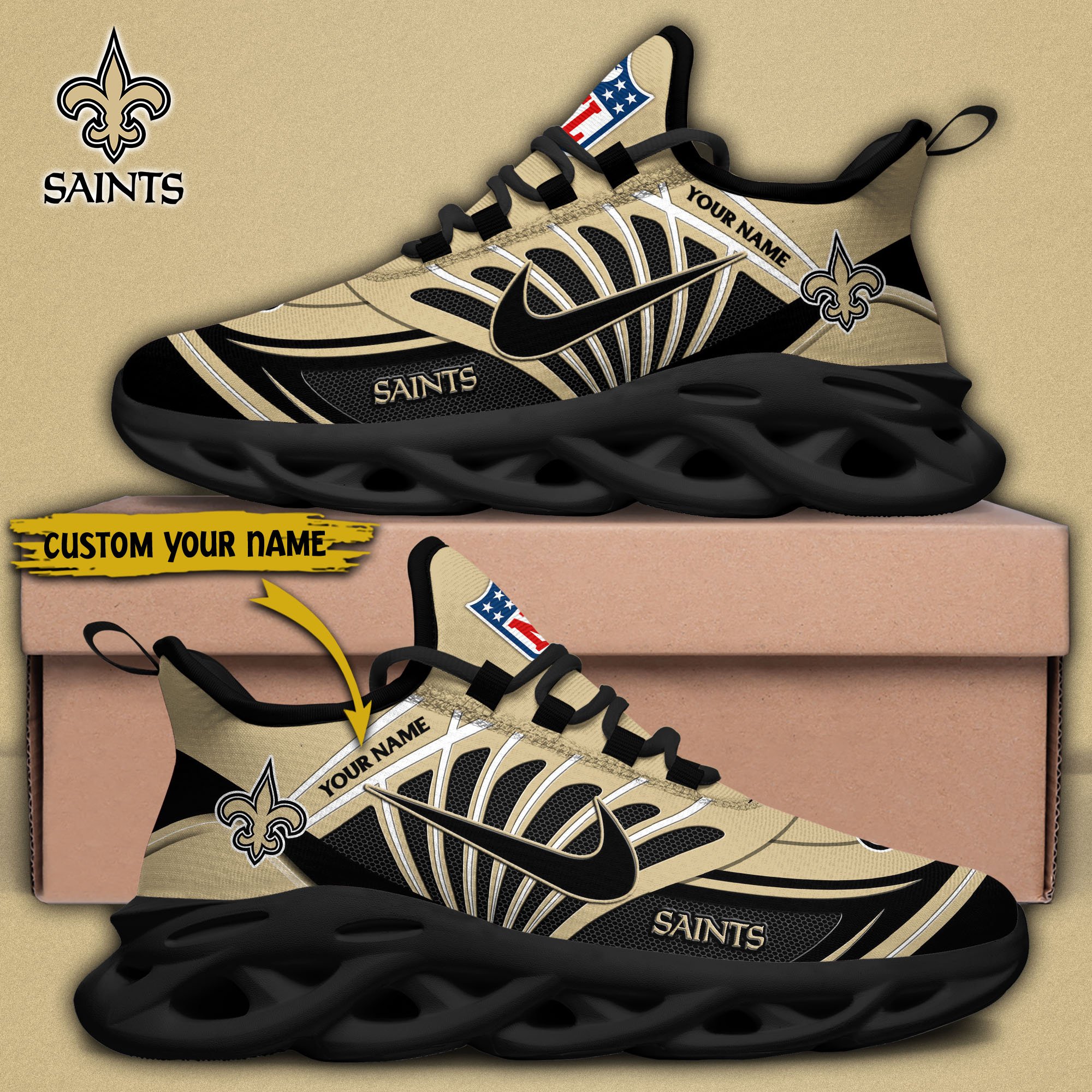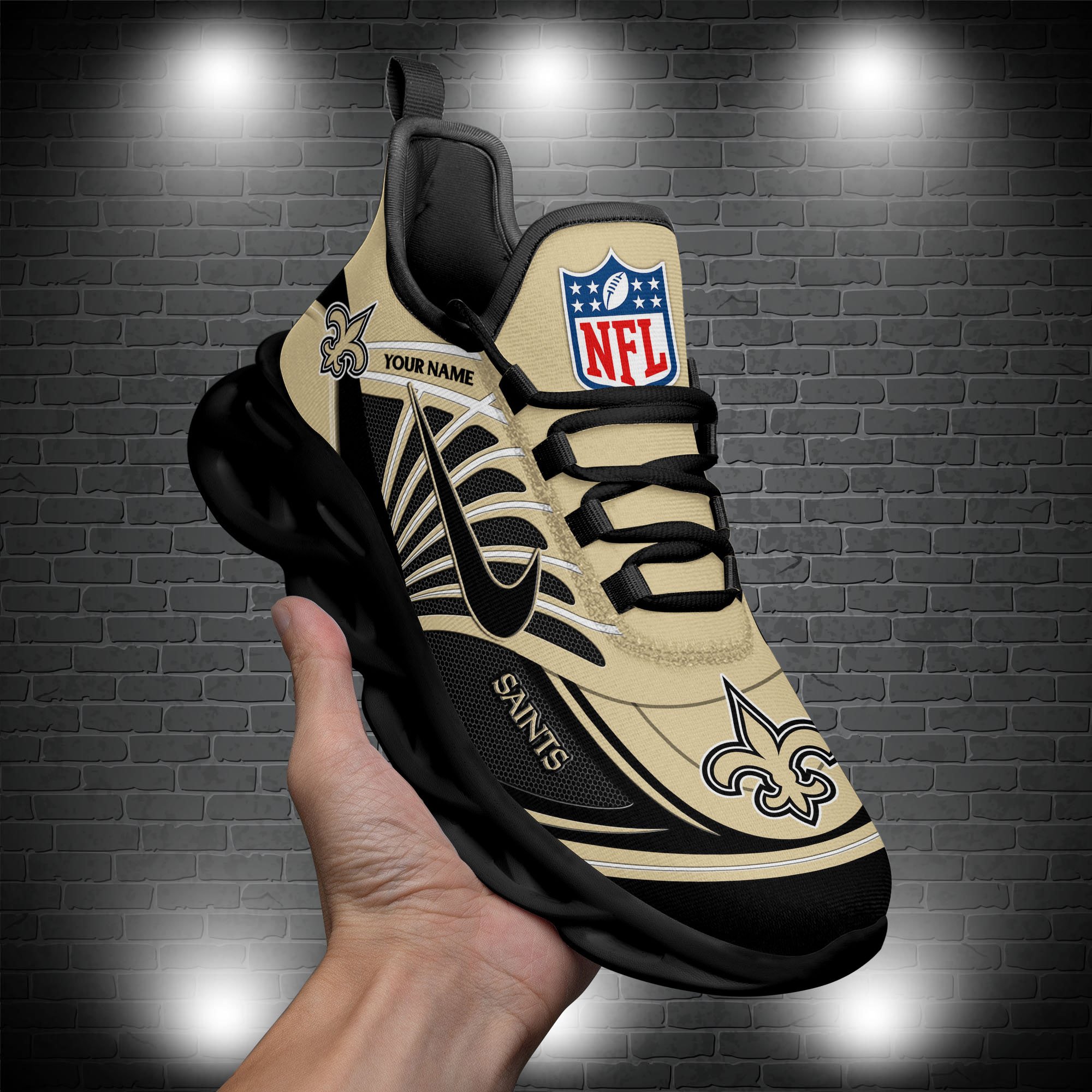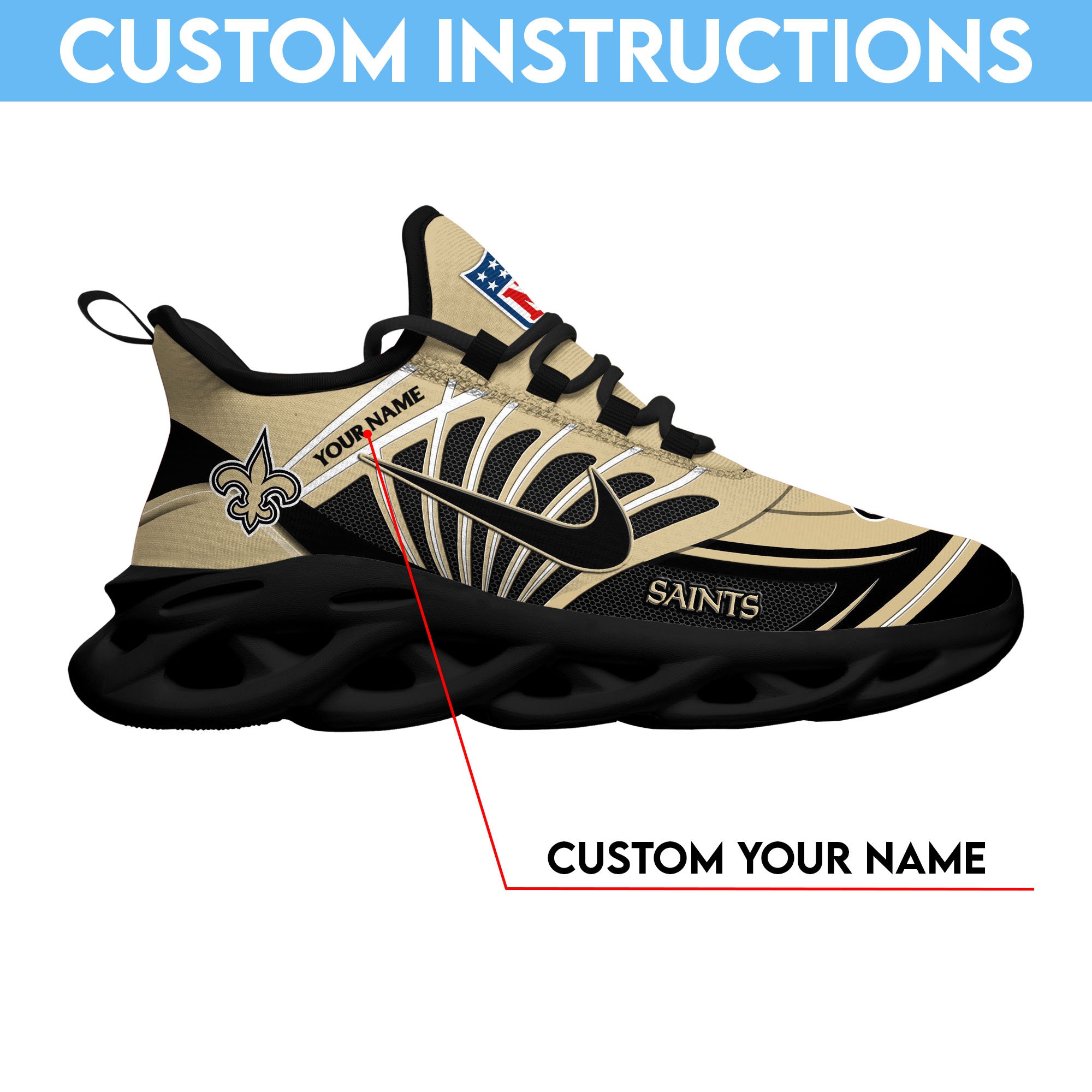 New Orleans Saints Black Max Soul Shoes 2026 Versions Custom Name 898