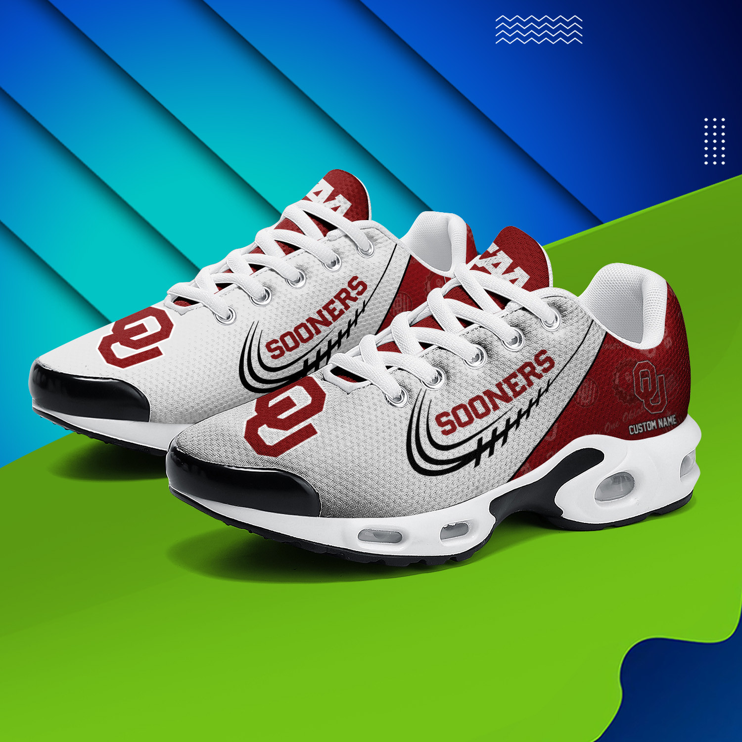 Oklahoma Sooners Personalized Name Team Logo Mix Colors Stitch Line TN Air Max Shoes Air Cushion Sneakers