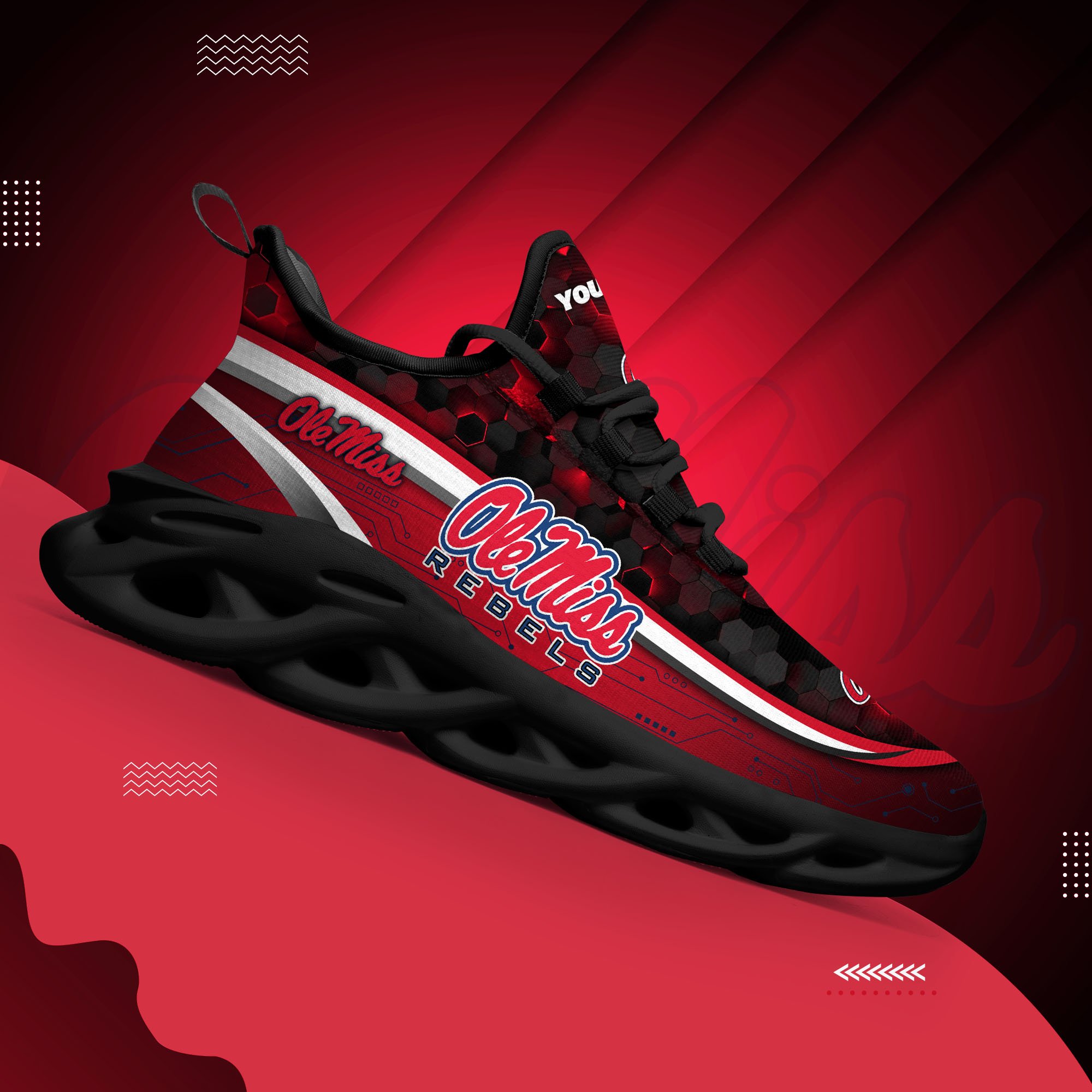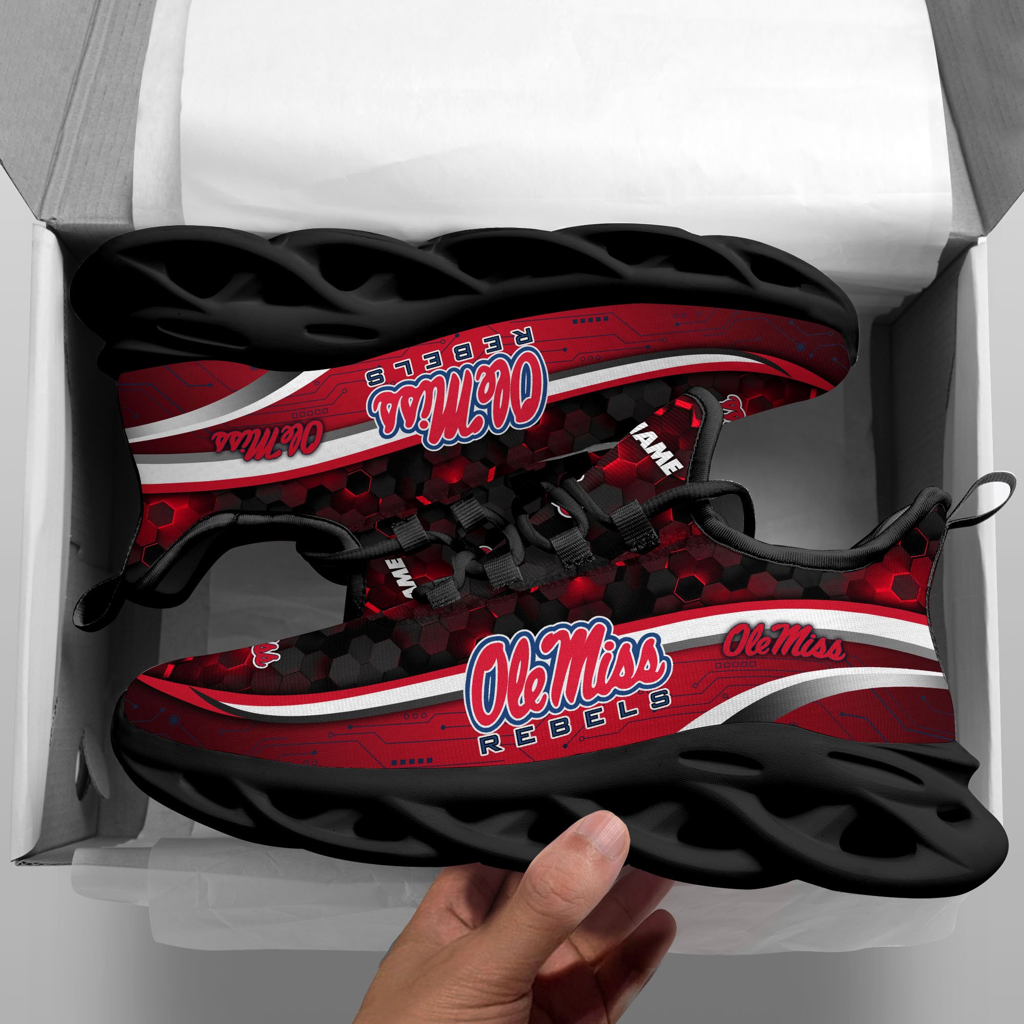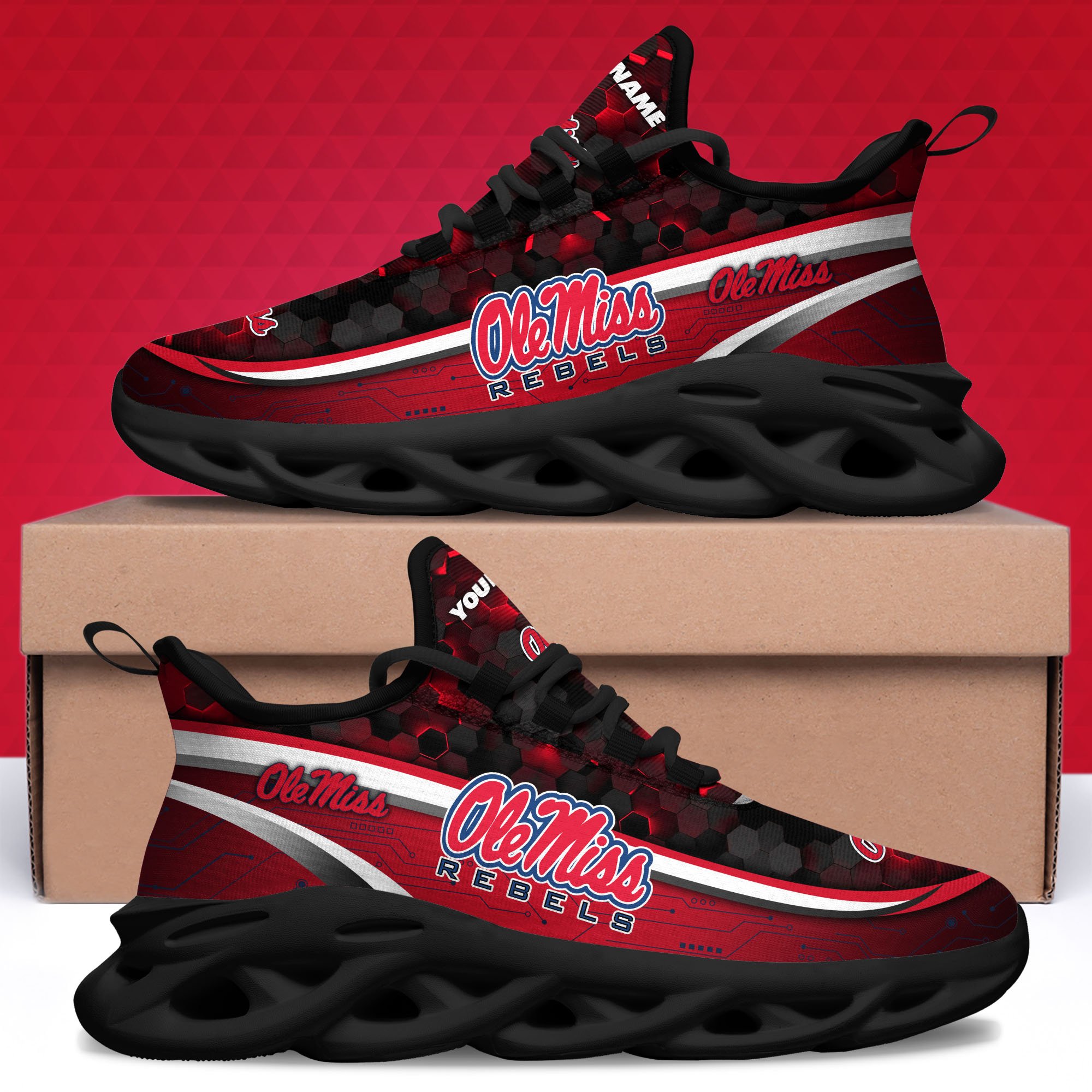 Ole Miss Rebels Black Clunky Sneakers Custom Name, Max Soul Shoes, Sport Gifts