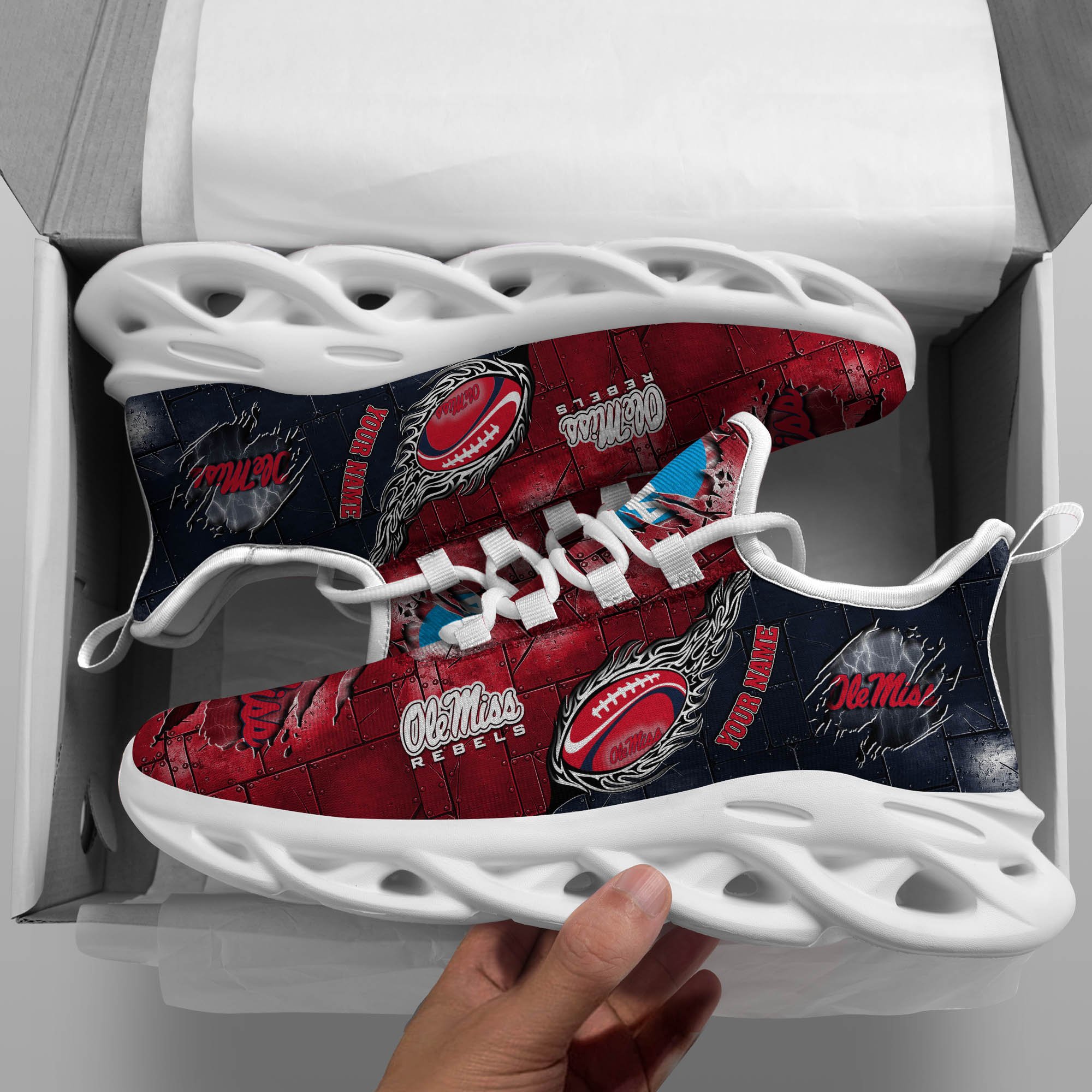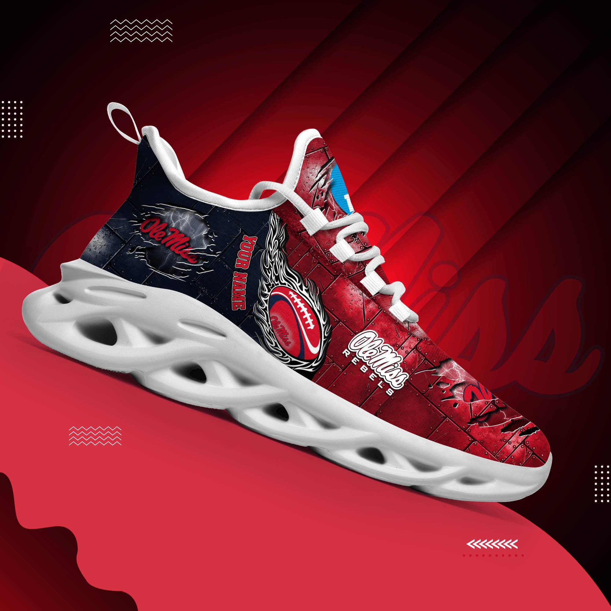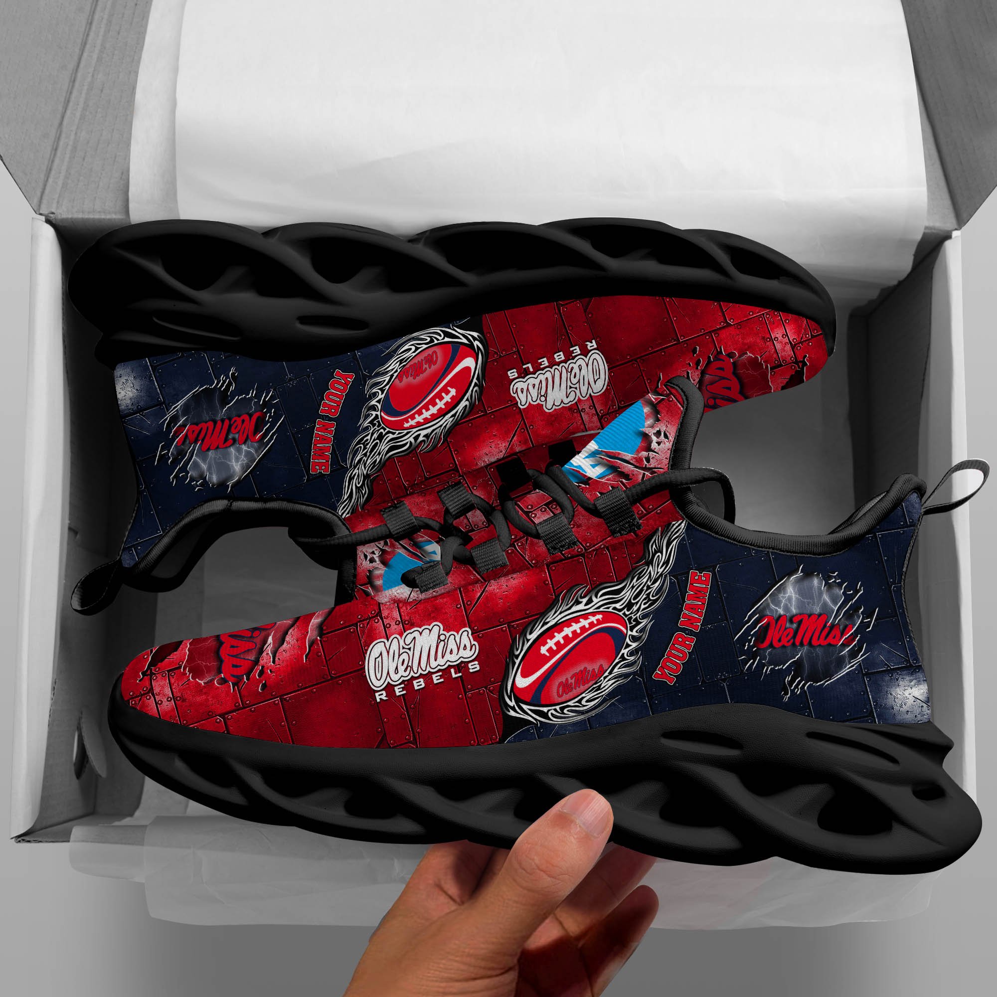 Ole Miss Rebels Black Max Soul Shoes 2026 Versions, White Max Soul Shoes Custom Your Name PH879