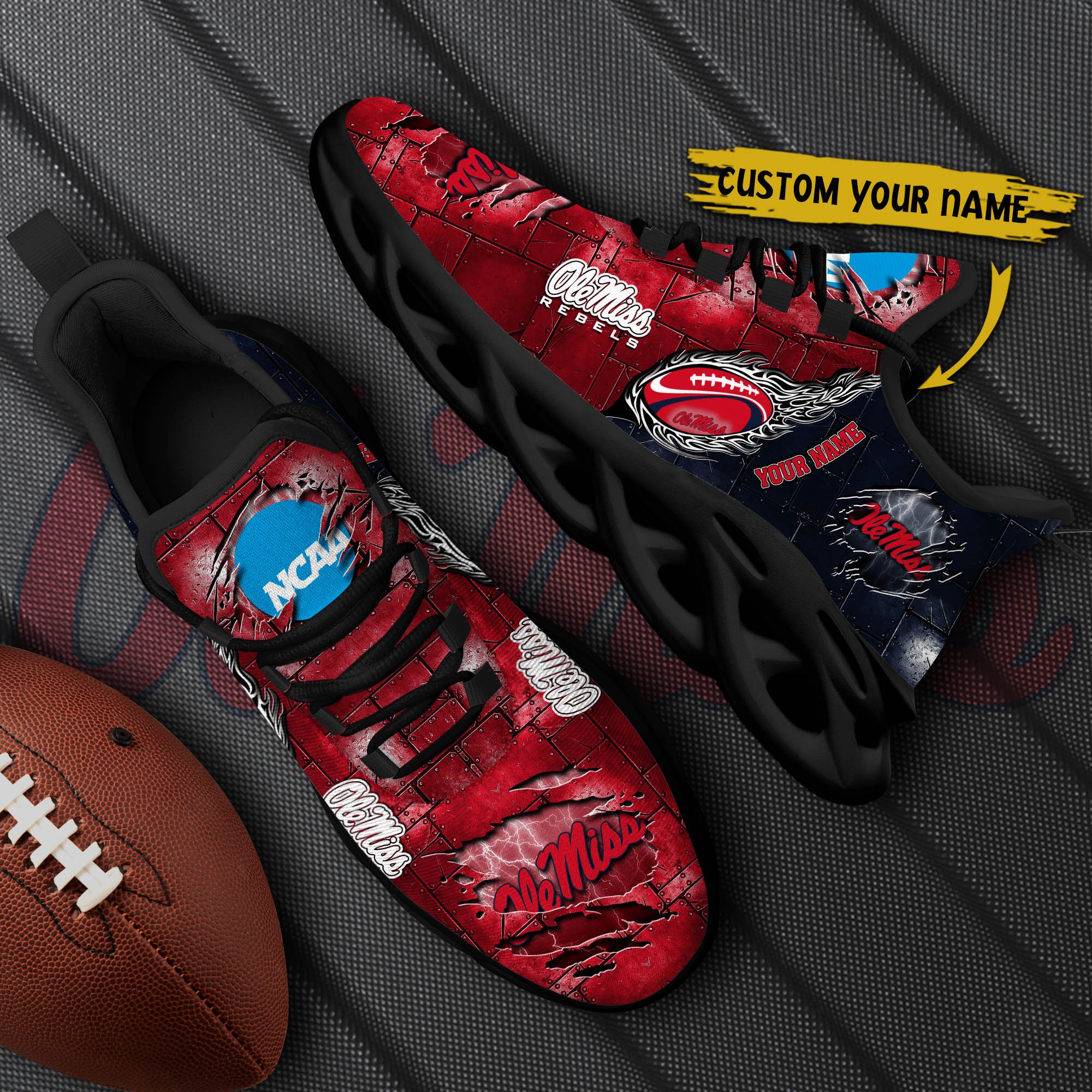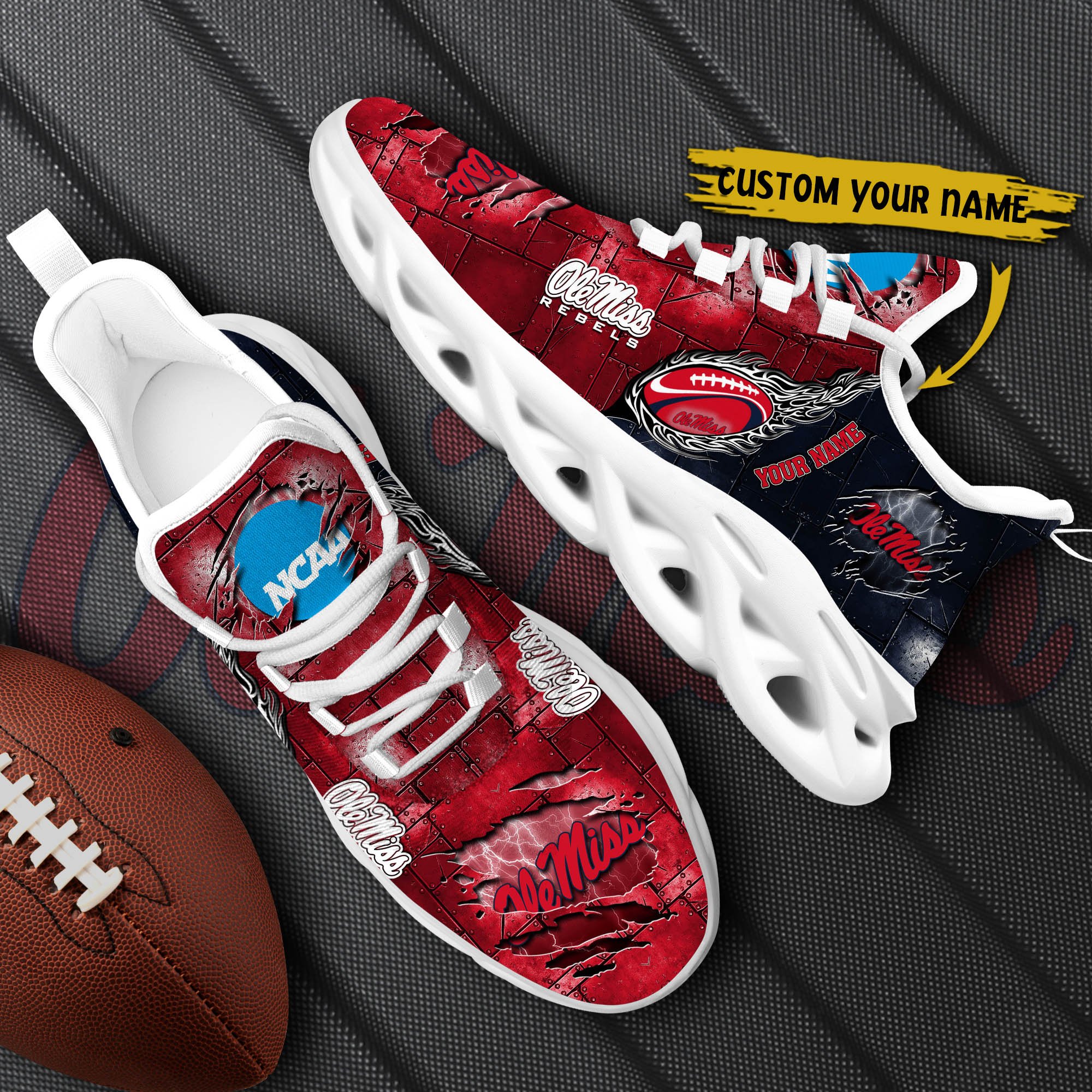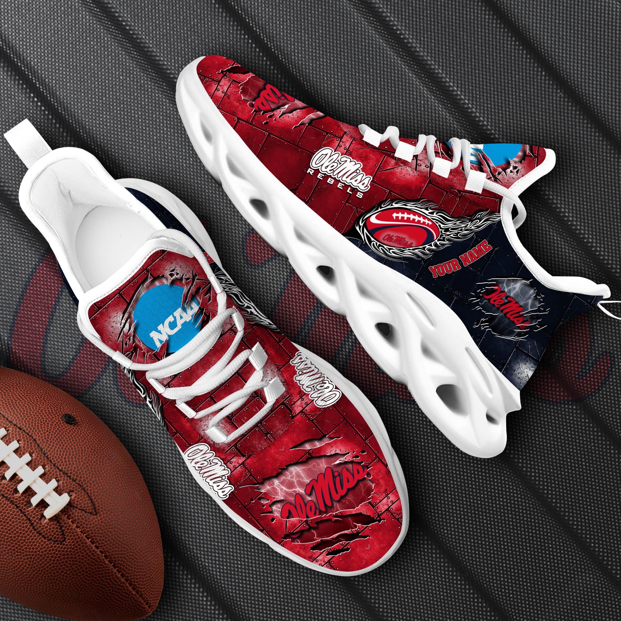 Ole Miss Rebels Black Max Soul Shoes 2026 Versions, White Max Soul Shoes Custom Your Name PH879