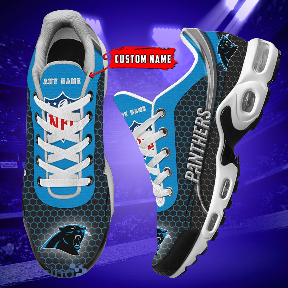 Personalized Carolina PanthersTeam Logo Hexagon Pattern Team Color TN Air Max Shoes Air Cushion Sneakers