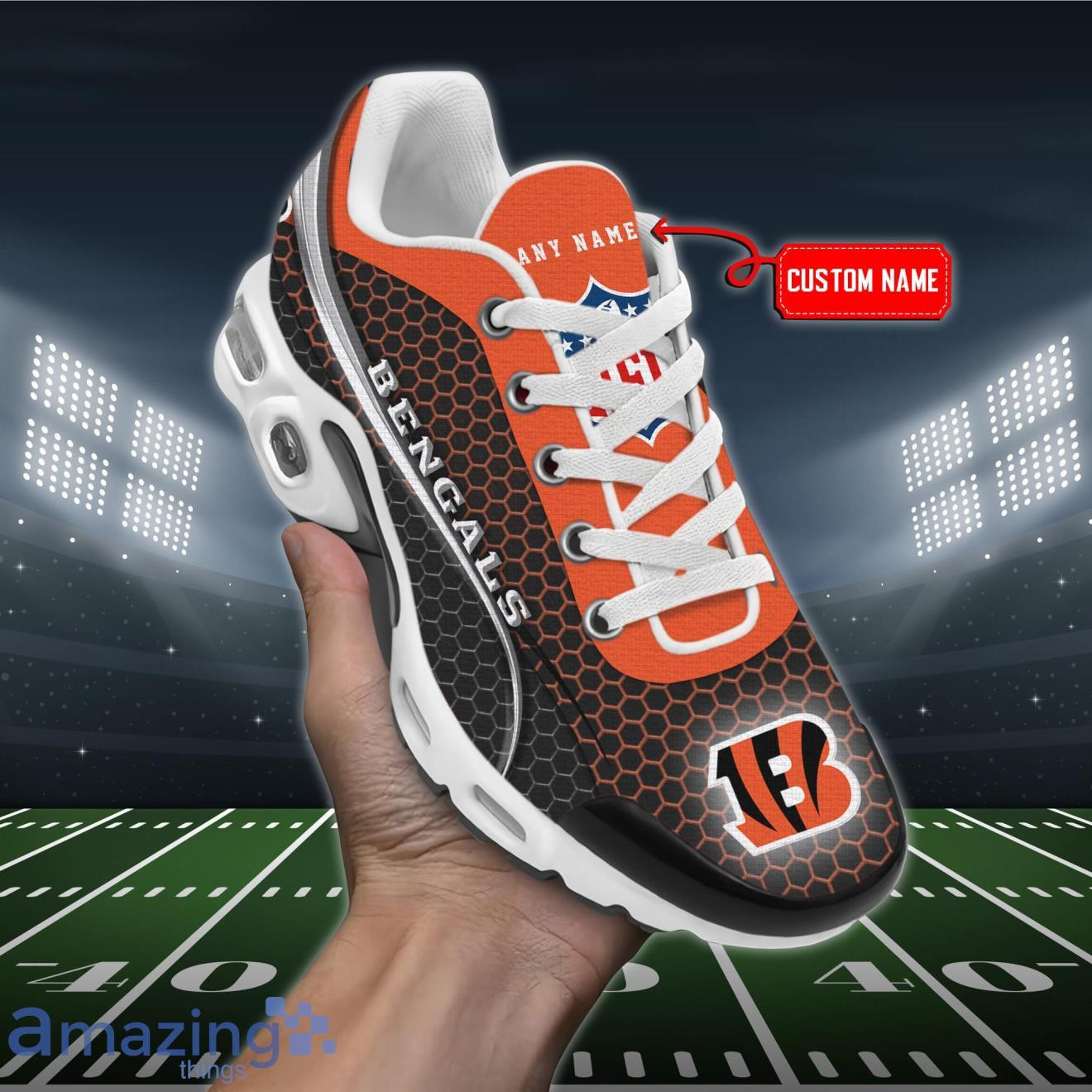 Personalized Cincinnati Bengals Team Logo Hexagon Pattern Team Color TN Shoes Air Cushion Sneakers