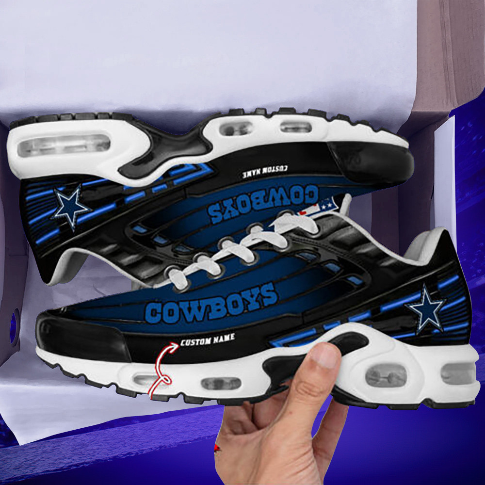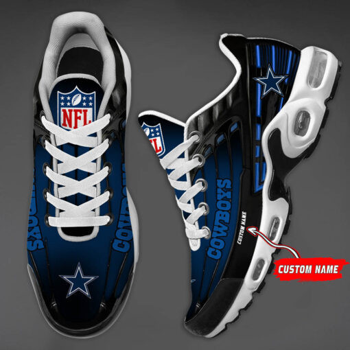 Personalized Dallas CowboysBlack And Team Color Stripes Black TN Air Max Shoes Air Cushion Sneakers
