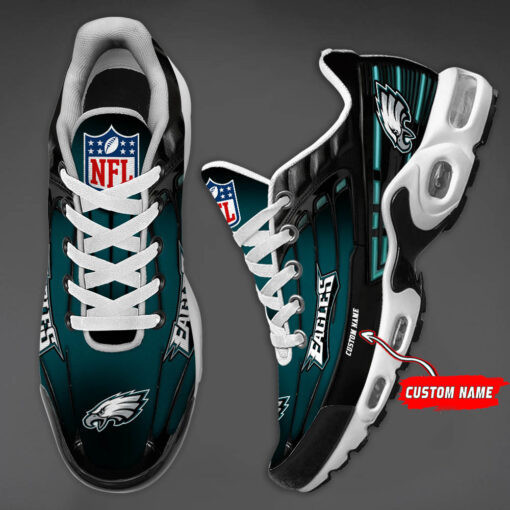Personalized Philadelphia Eagles Black And Team Color Stripes Black TN Shoes Air Cushion Sneakers