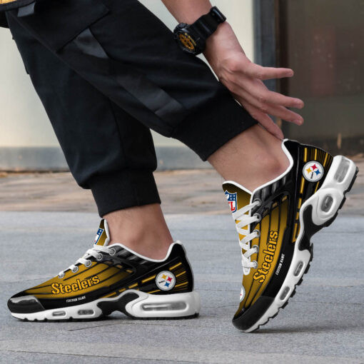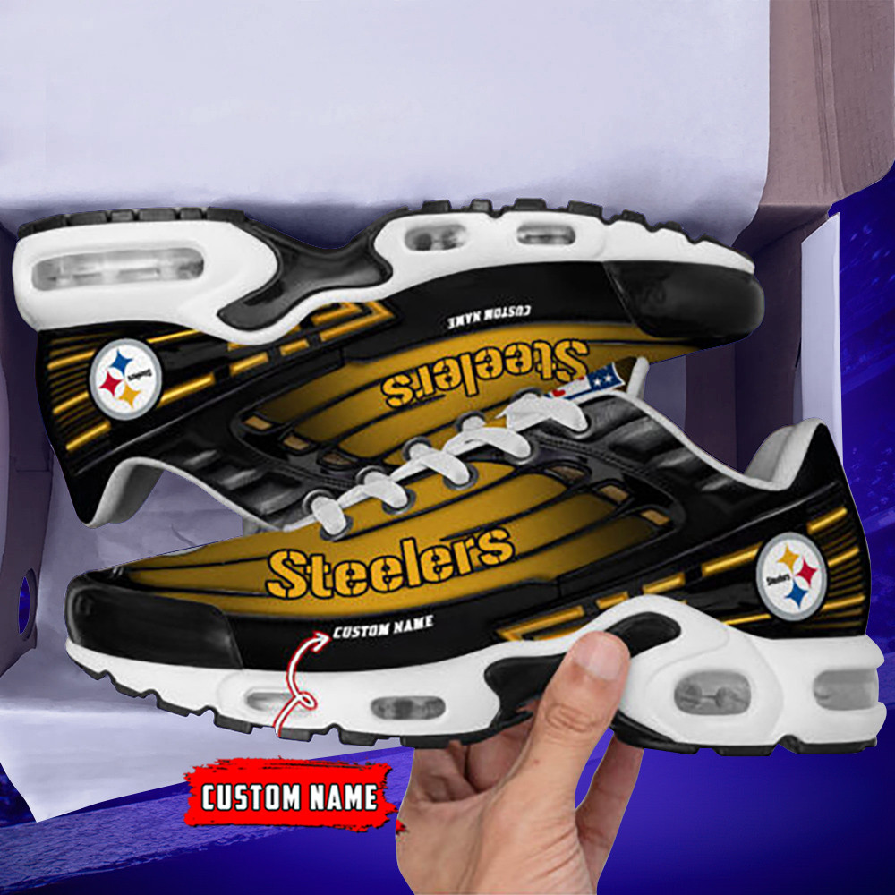 Personalized Pittsburgh SteelersBlack And Team Color Stripes Black TN Air Max Shoes Air Cushion Sneakers