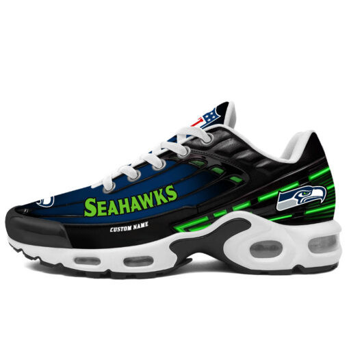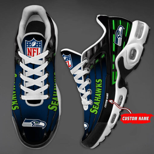 Personalized Seattle SeahawksBlack And Team Color Stripes Black TN Air Max Shoes Air Cushion Sneakers