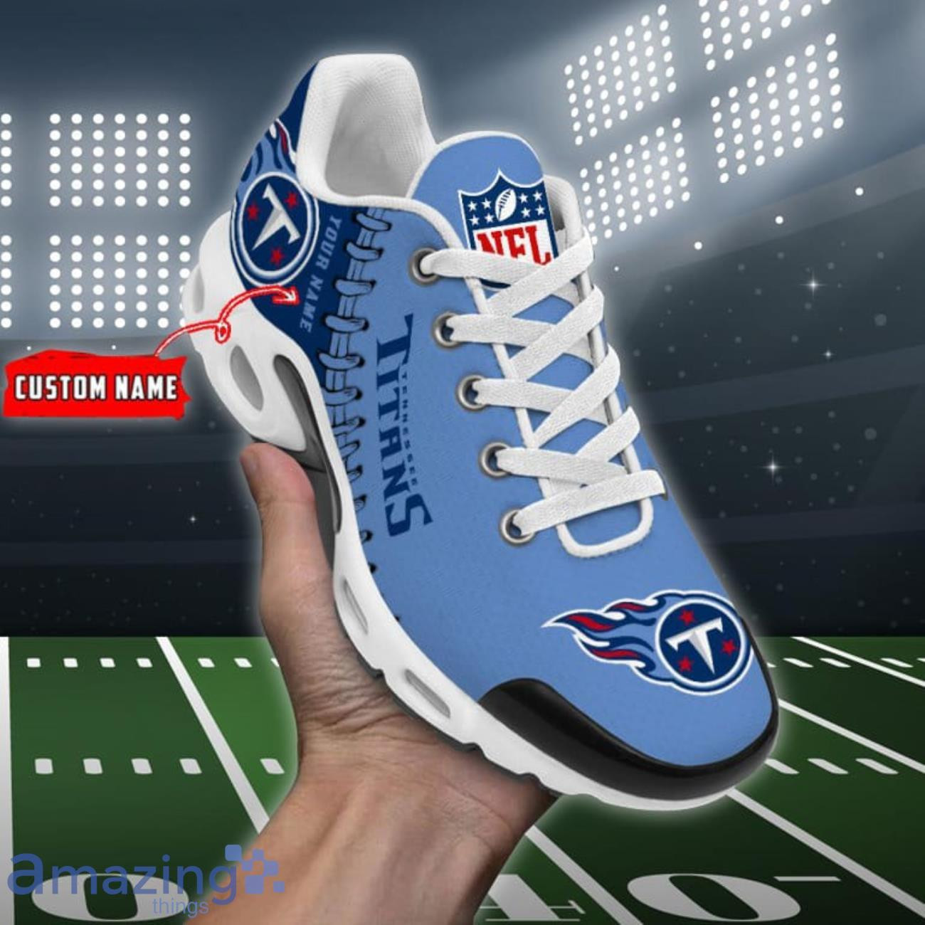 Personalized Tennessee Titans Team Logo Rugby Ball Pattern TN Shoes Air Cushion Sneakers