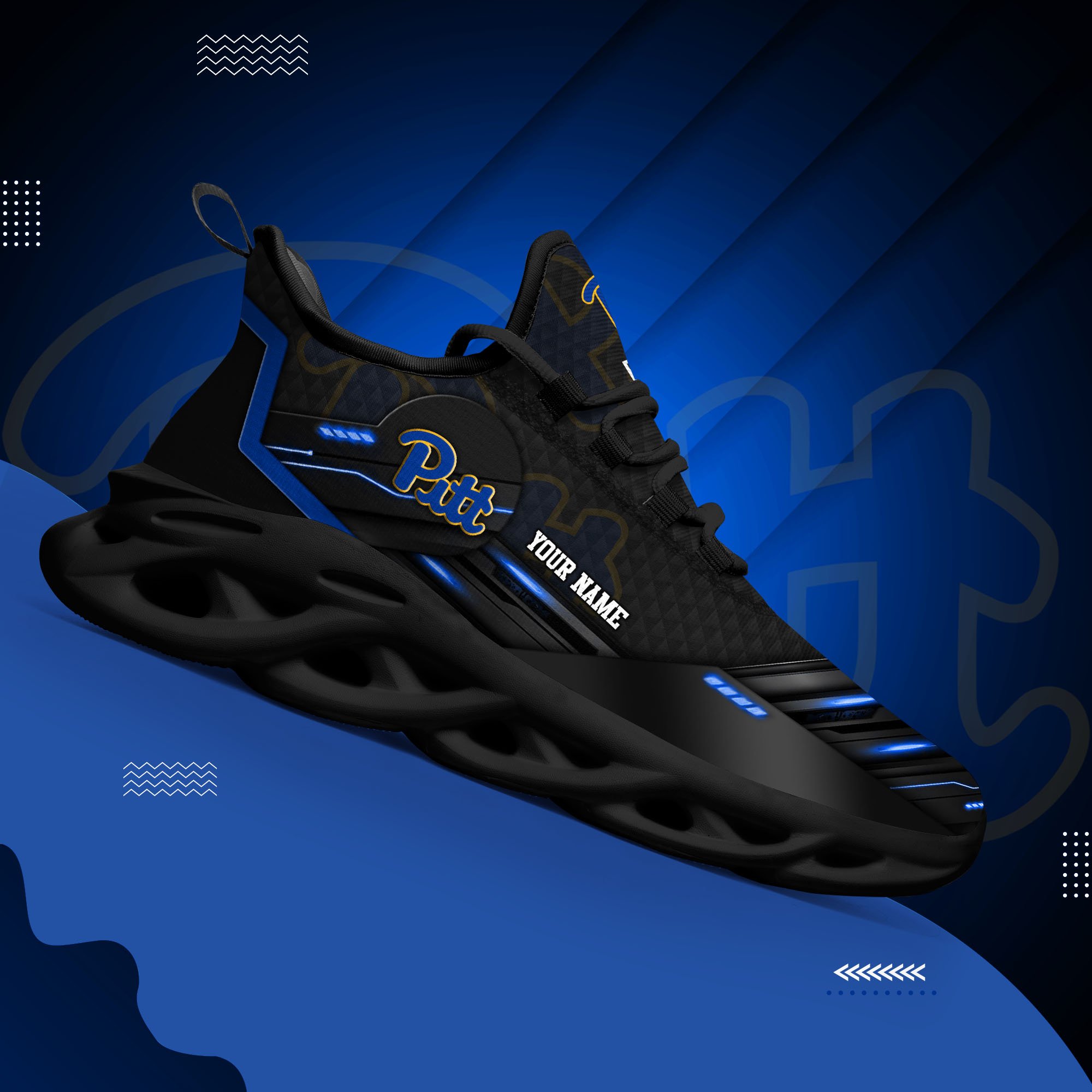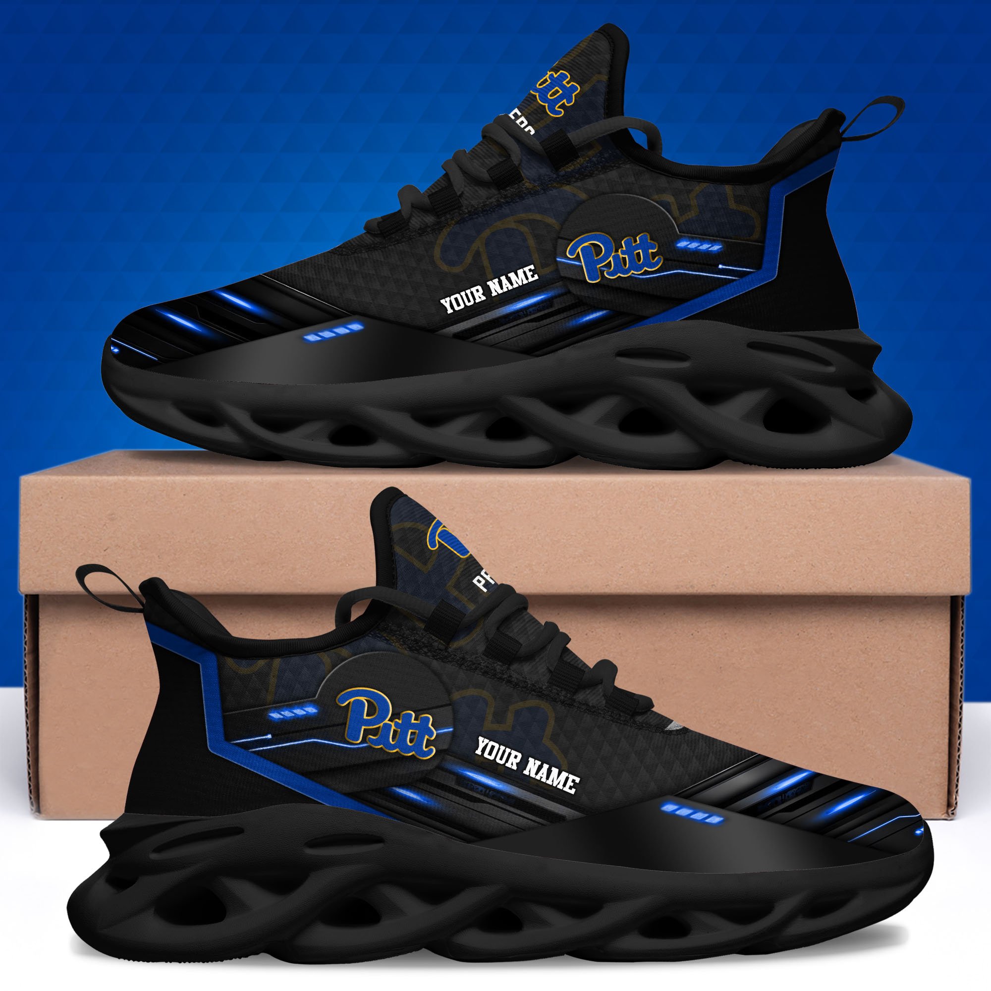 Pittsburgh Panthers Black Clunky Sneaker Custom Name, Max Soul Shoes, Sport Gifts For Fan