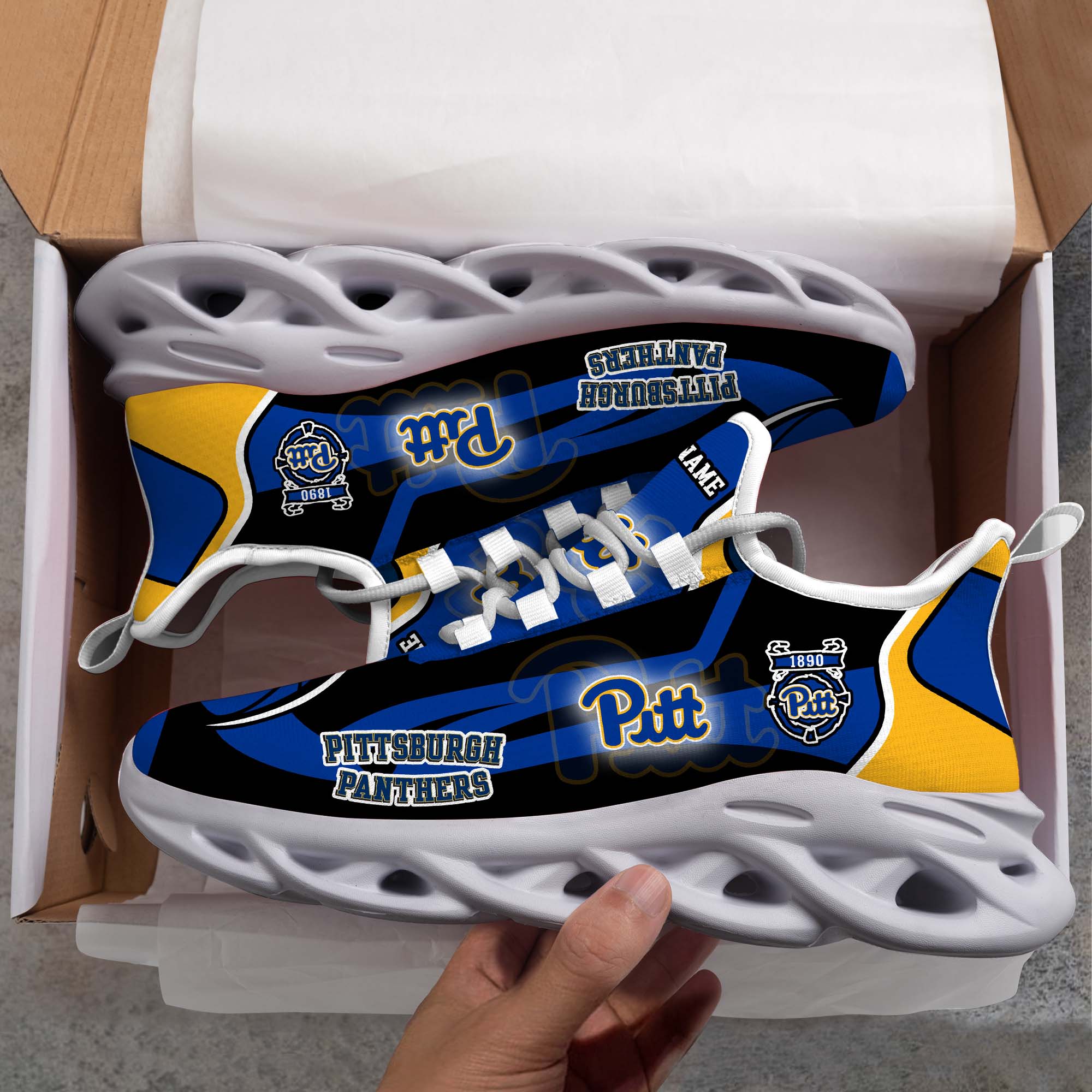 Pittsburgh Panthers White C Sneakers 2026 Version Personalized Your Name 090