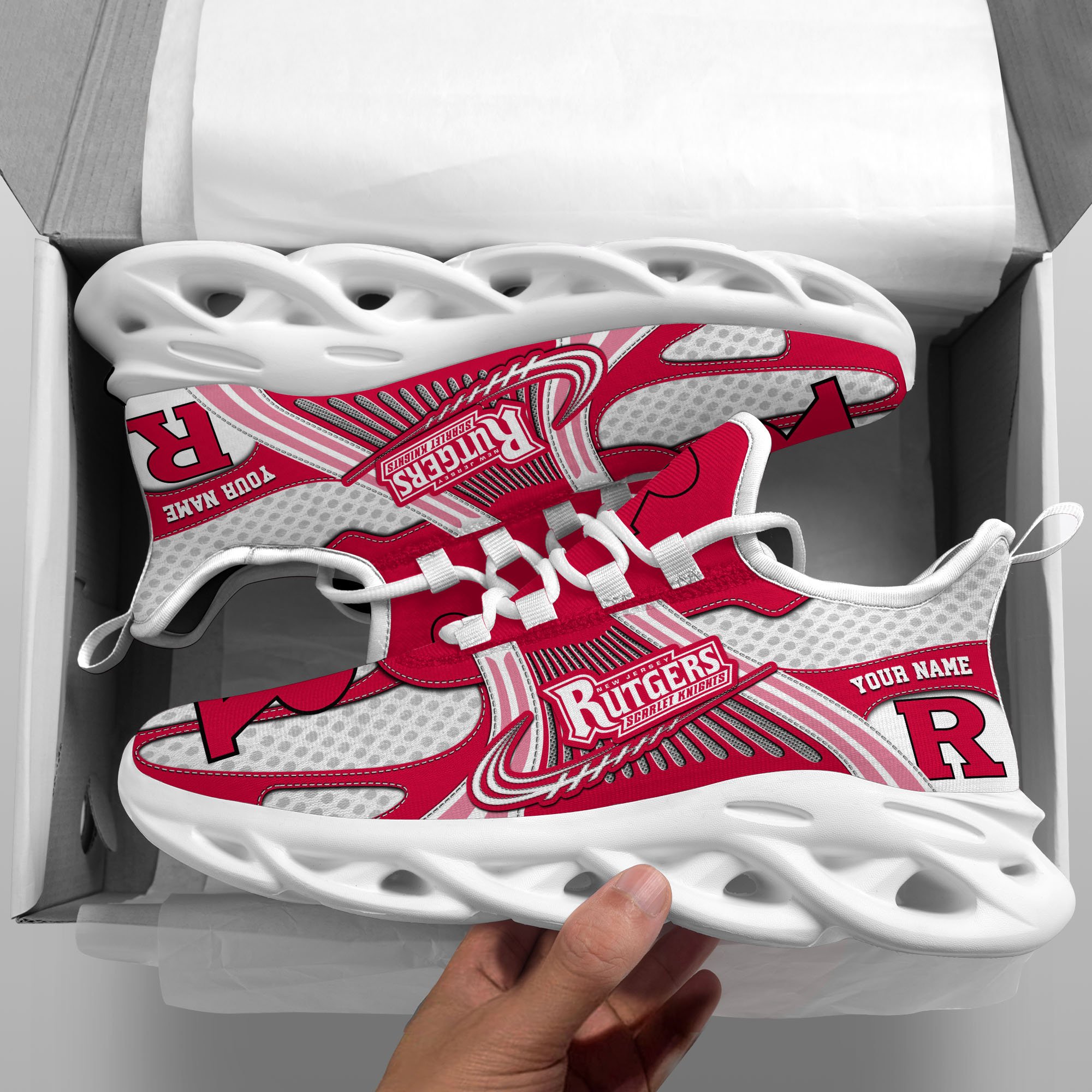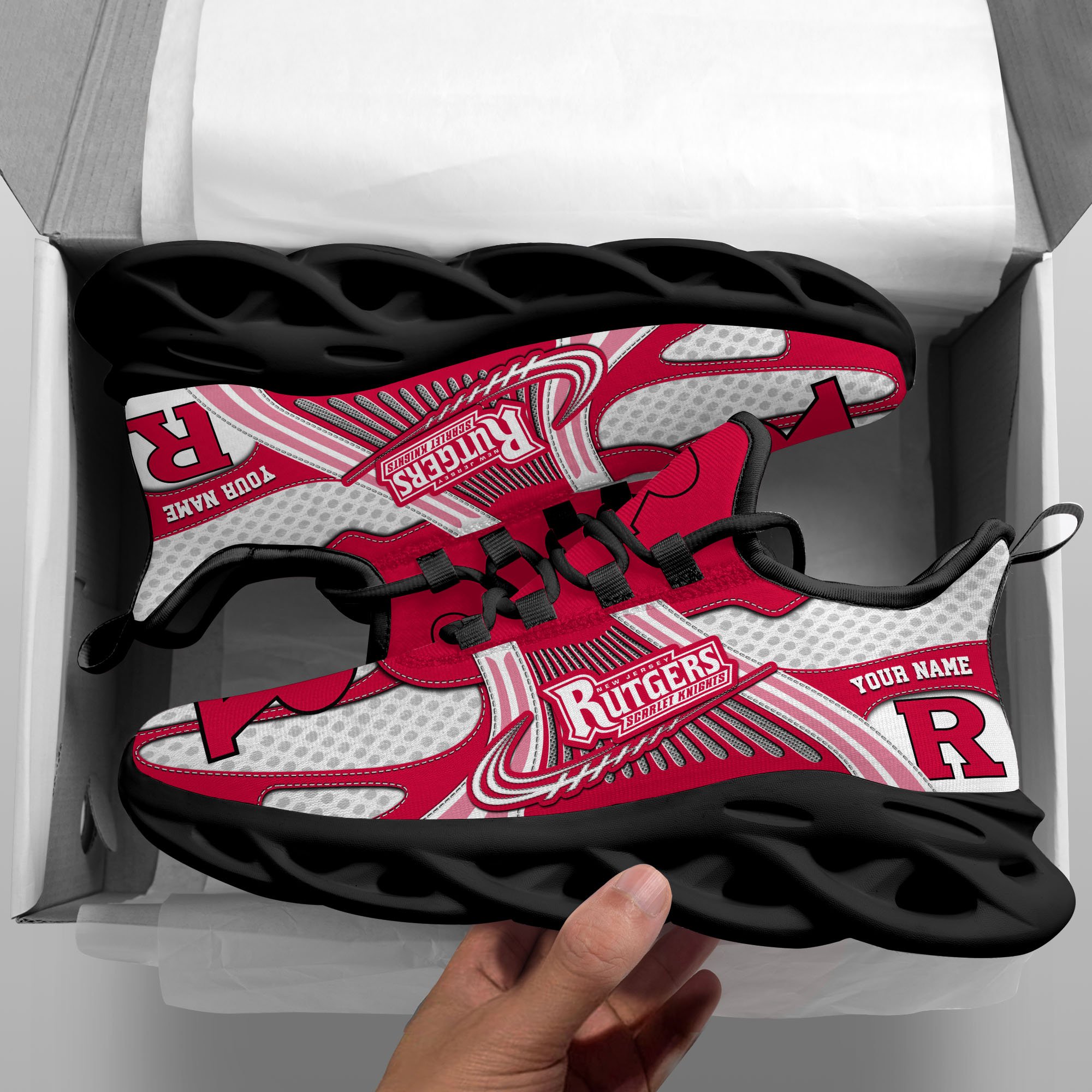 Rutgers Scarlet Knights Clunky Sneakers Custom Your Name, Sport Sneakers, Sport Gifts For Fan, Gifts For Him