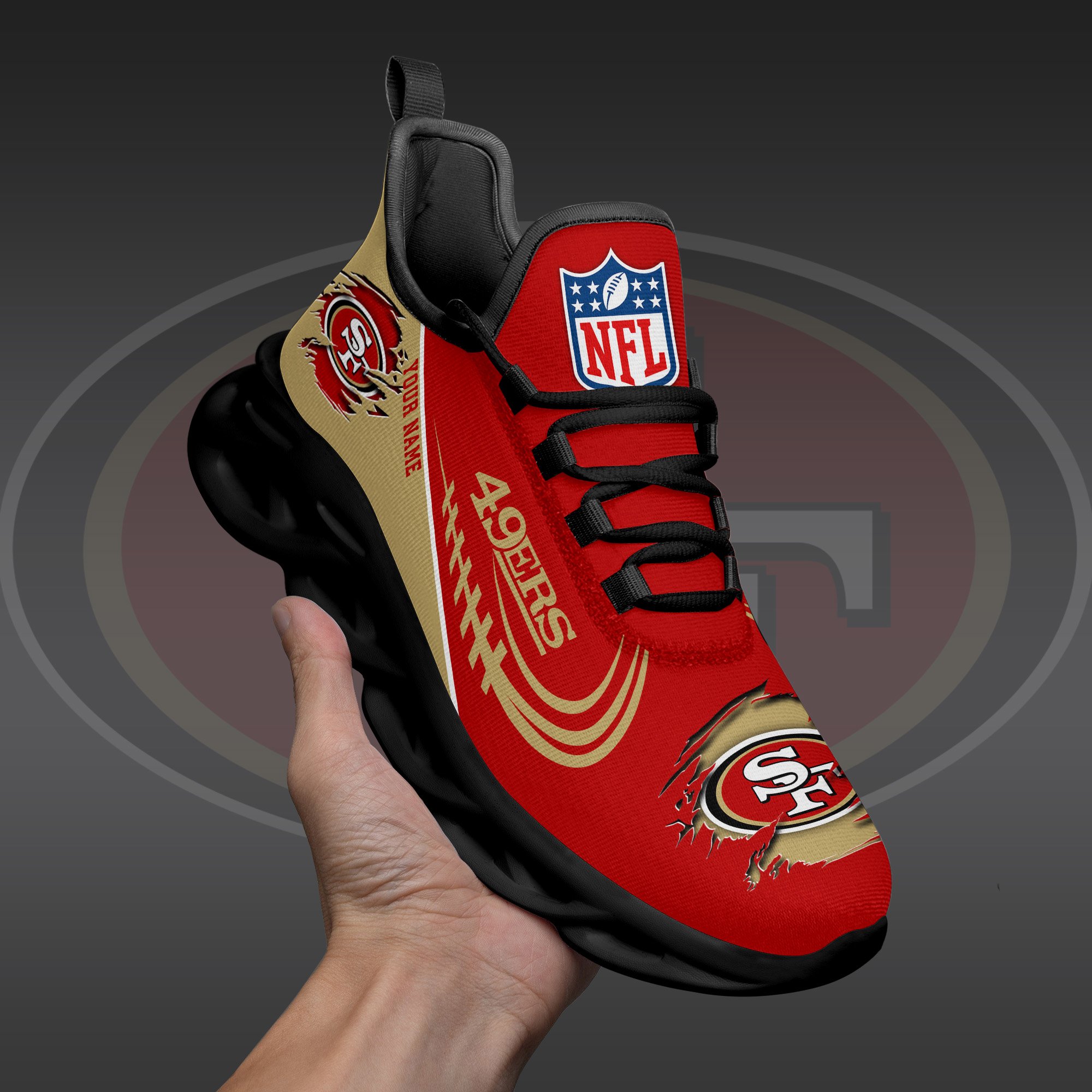 San Francisco 49Ers Black Max Soul Shoes 2026 Versions Custom Name 003