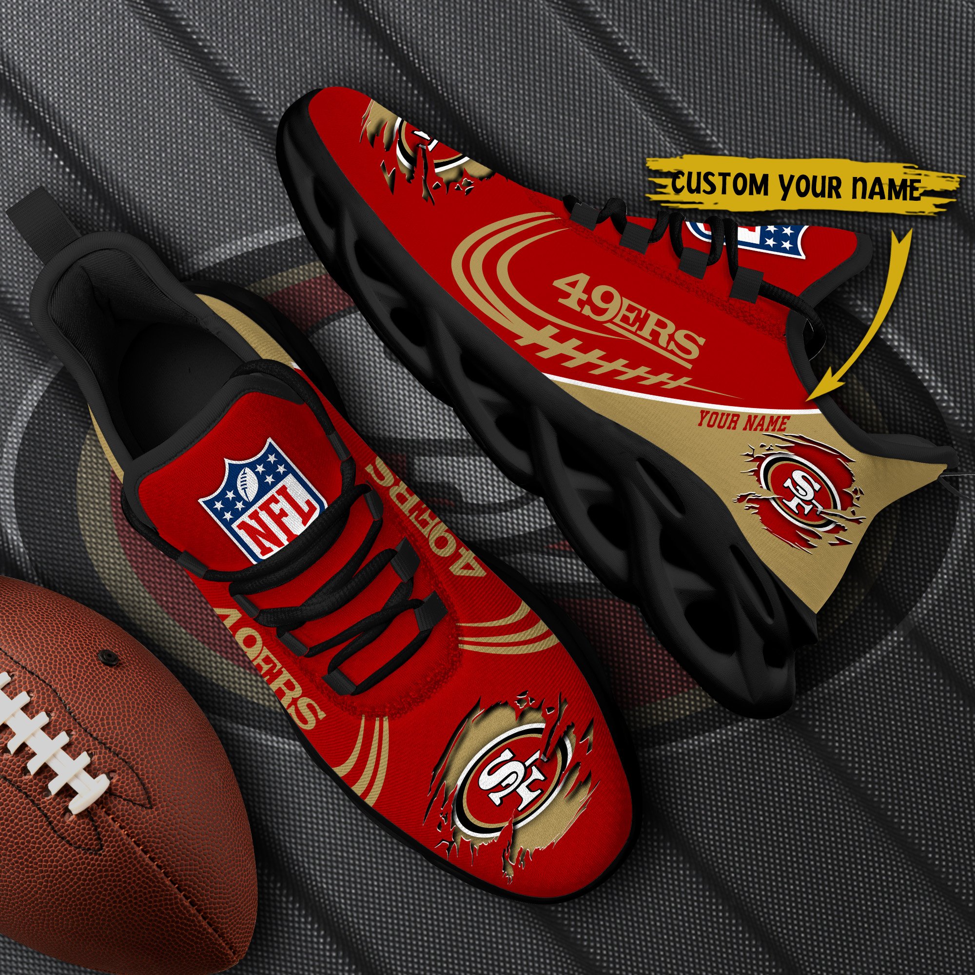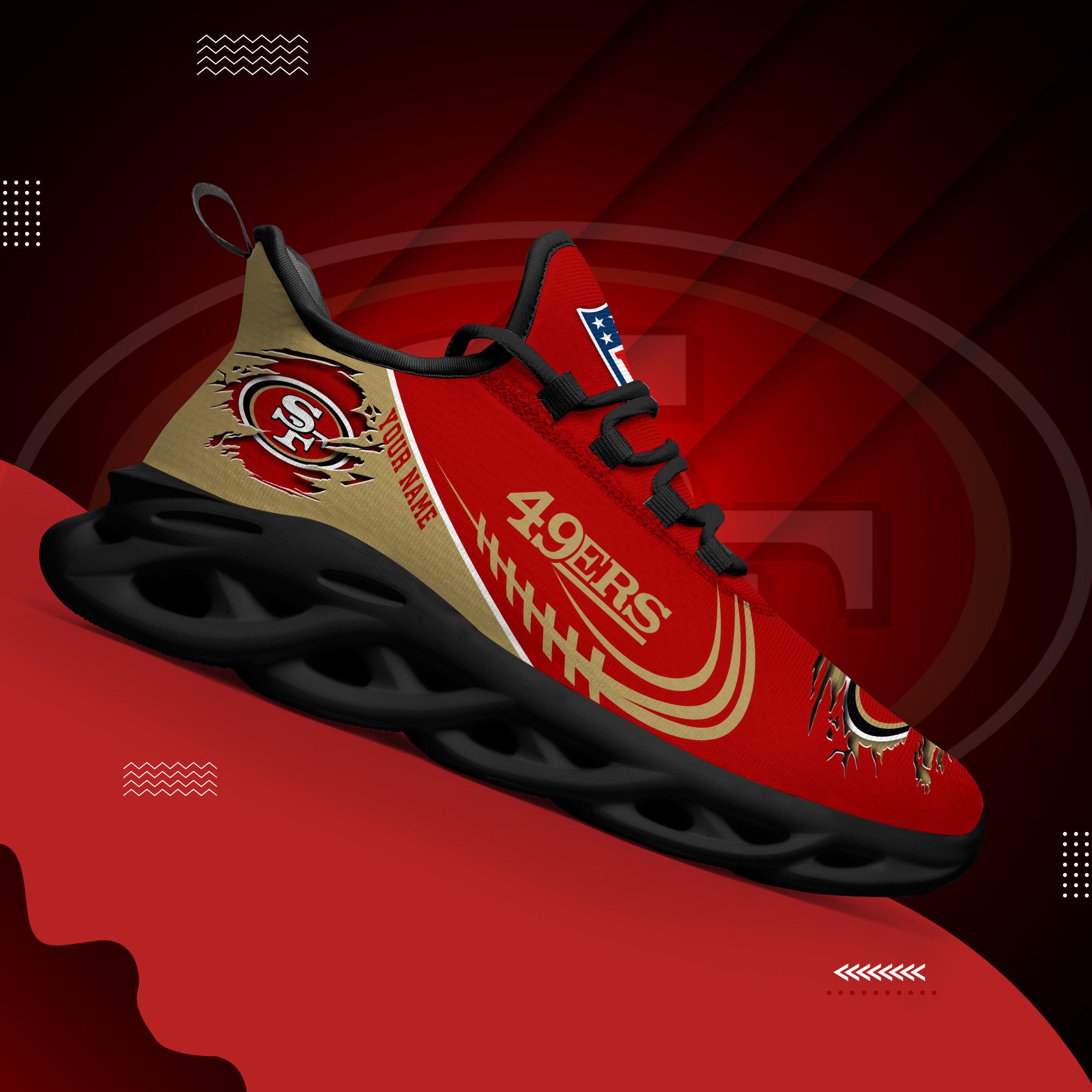 San Francisco 49Ers Black Max Soul Shoes 2026 Versions Custom Name 003