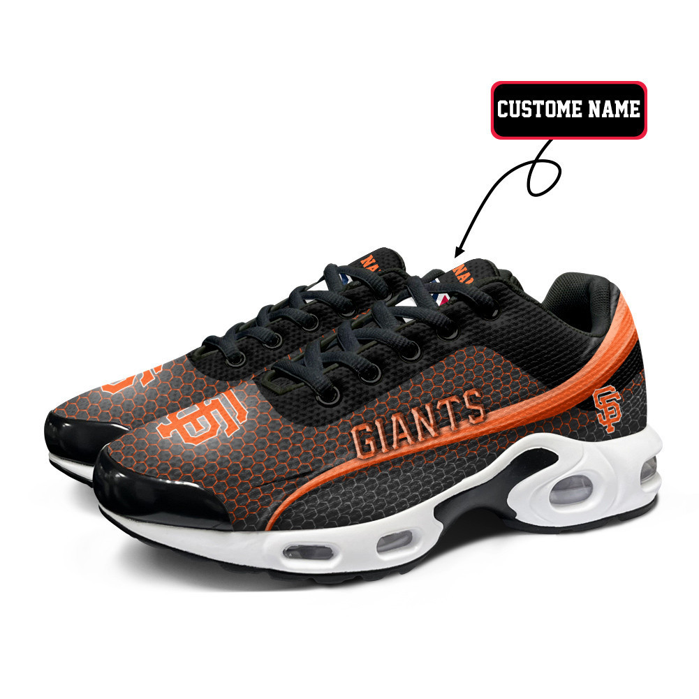 San Francisco Giants Personalized Name Team Colors Wave Line Beehive Pattern TN Shoes Air Cushion Sneakers