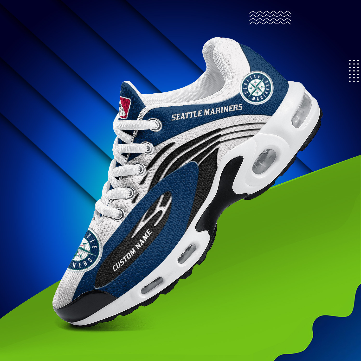 Seattle Mariners Personalized Name Team Logo Mix Colors Wave Line TN Shoes Air Cushion Sneakers