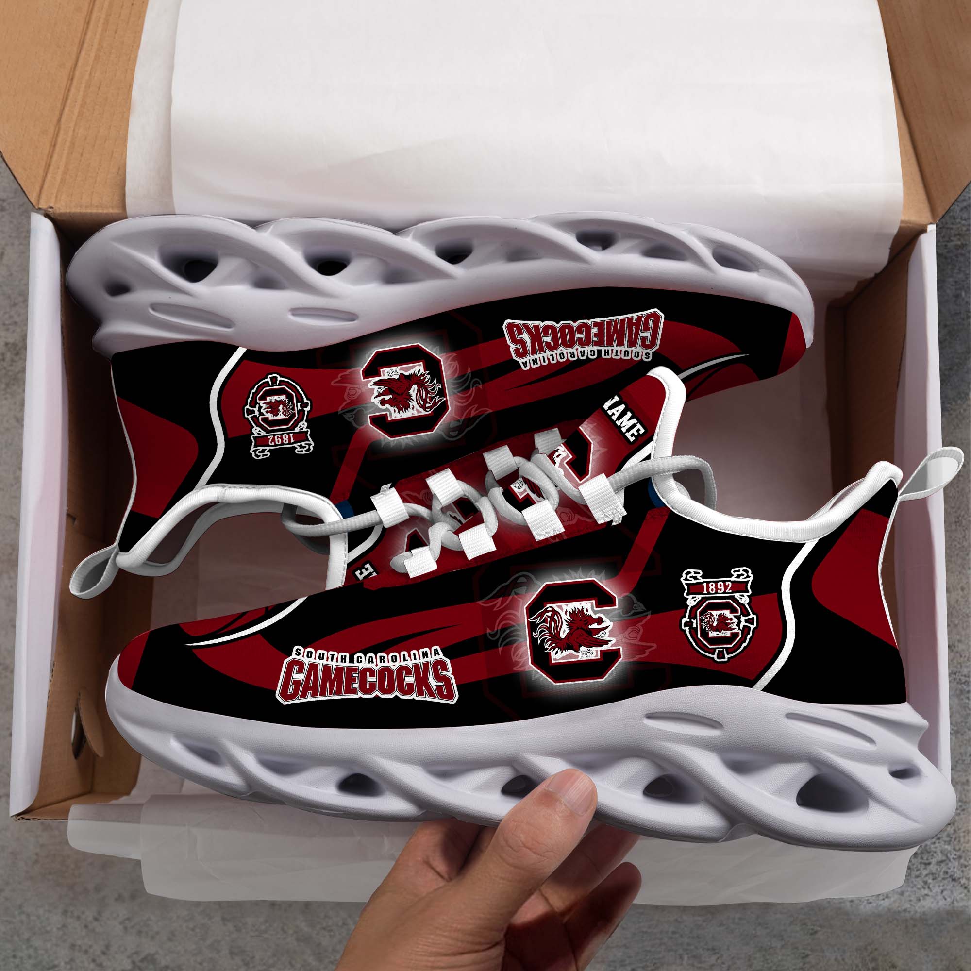 South Carolina Gamecocks White C Sneakers 2026 Version Personalized Your Name 090