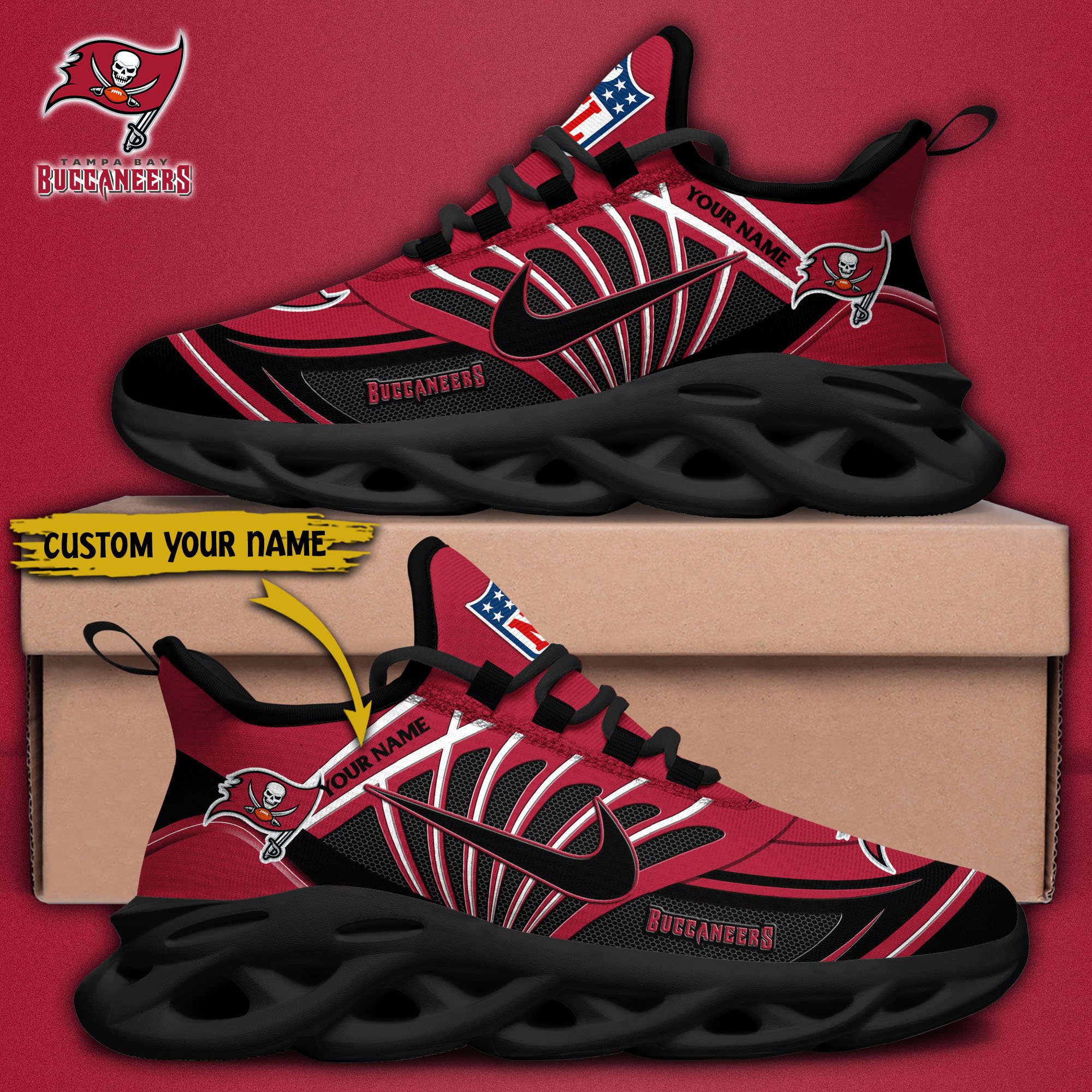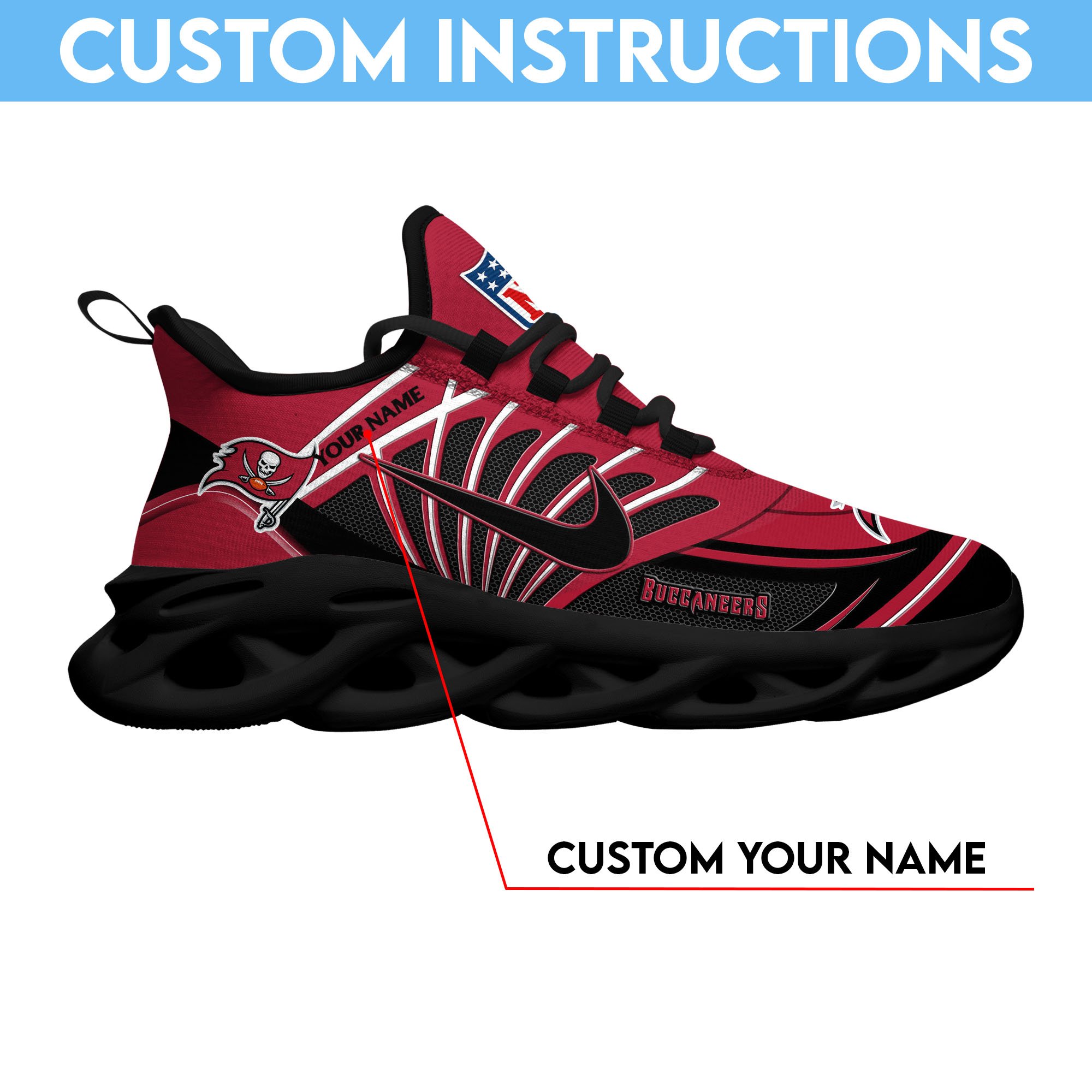Tampa Bay Buccaneers Black Max Soul Shoes 2026 Versions Custom Name 898