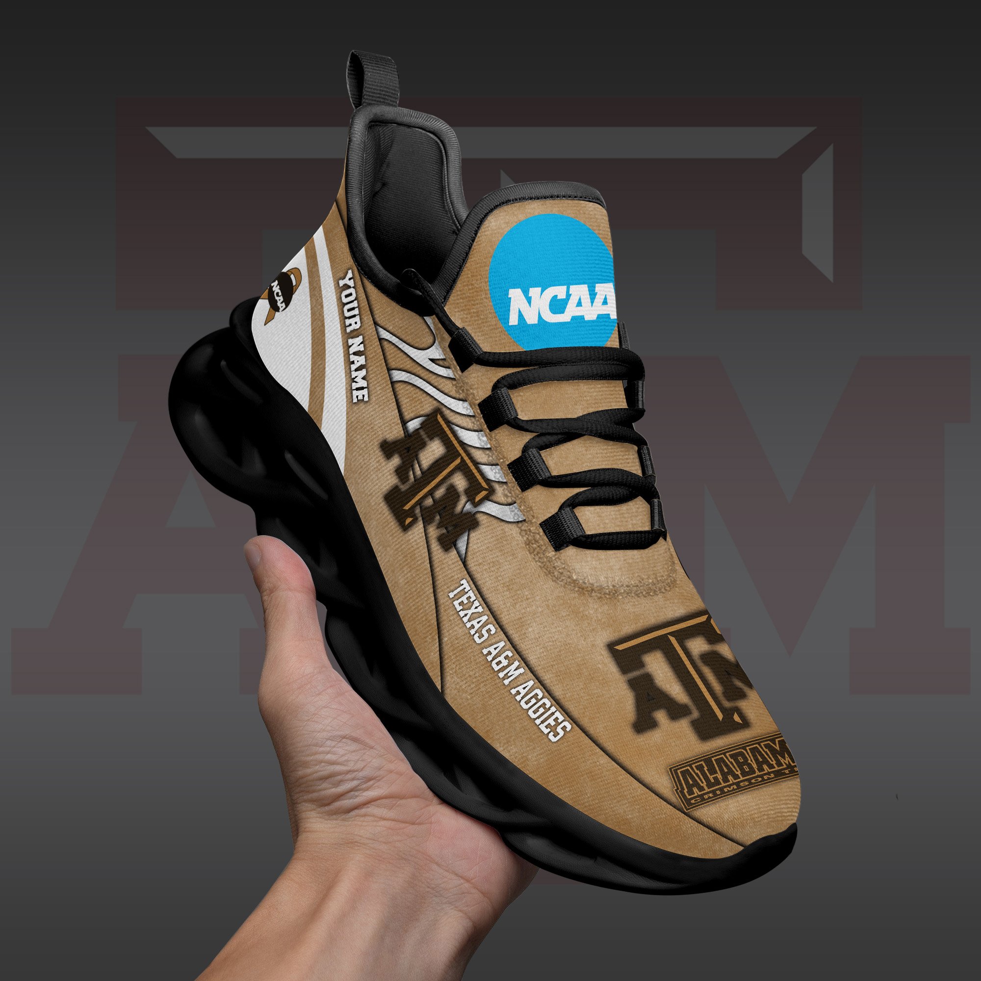 Texas A#038M Aggies Black Max Soul Shoes 2026 Versions Custom Your Name And Number 312