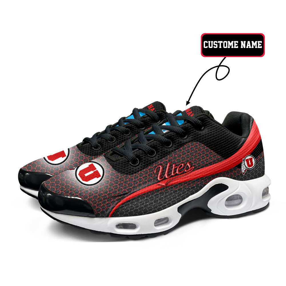 Utah Utes Personalized Name Team Colors Wave Line Beehive Pattern TN Shoes Air Cushion Sneakers