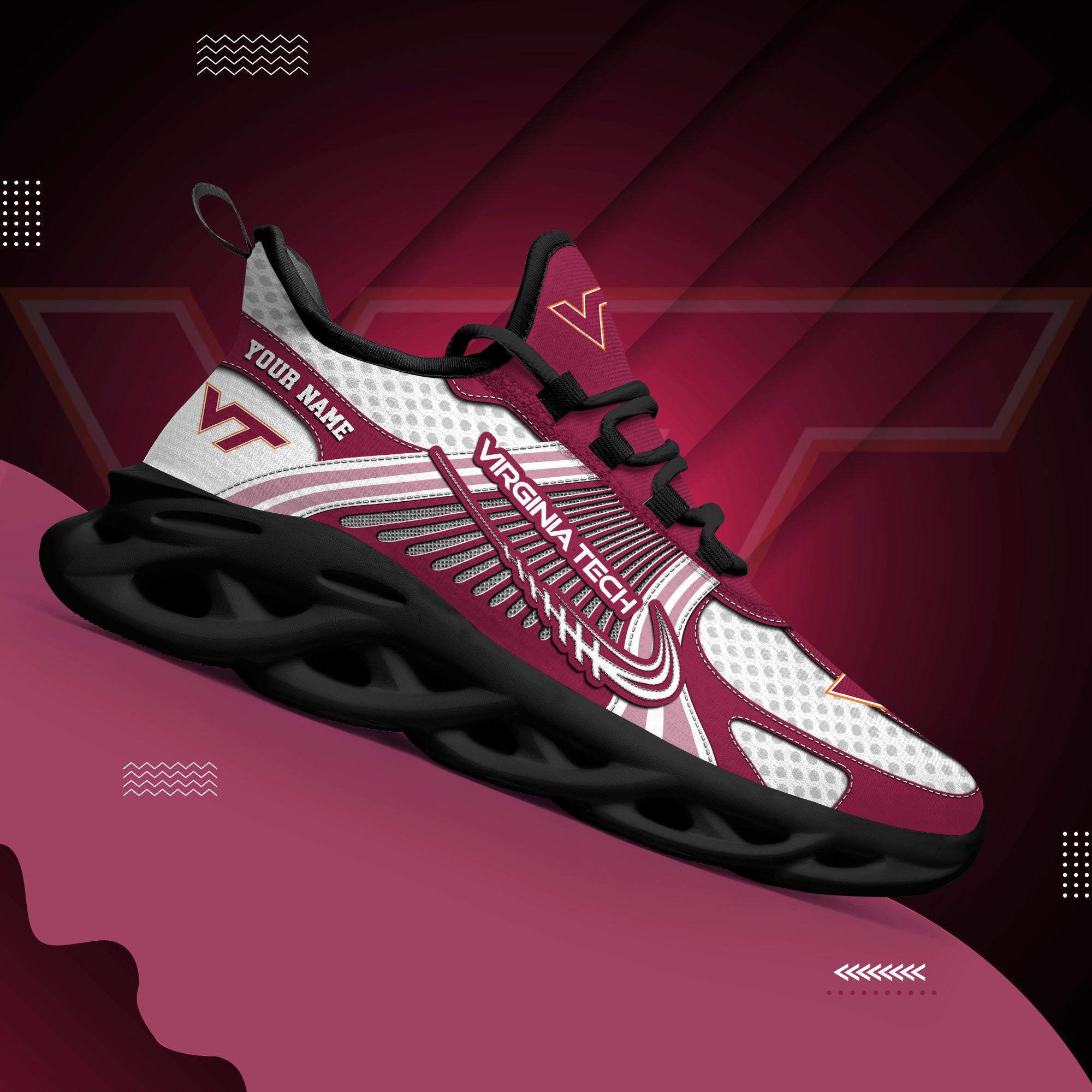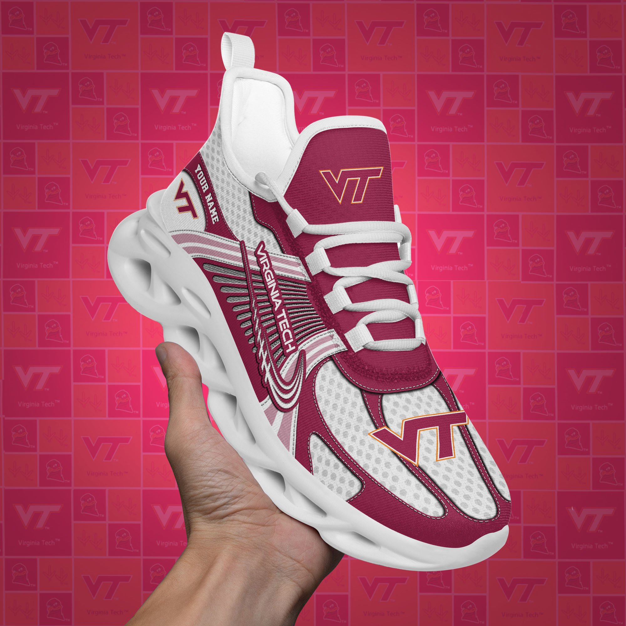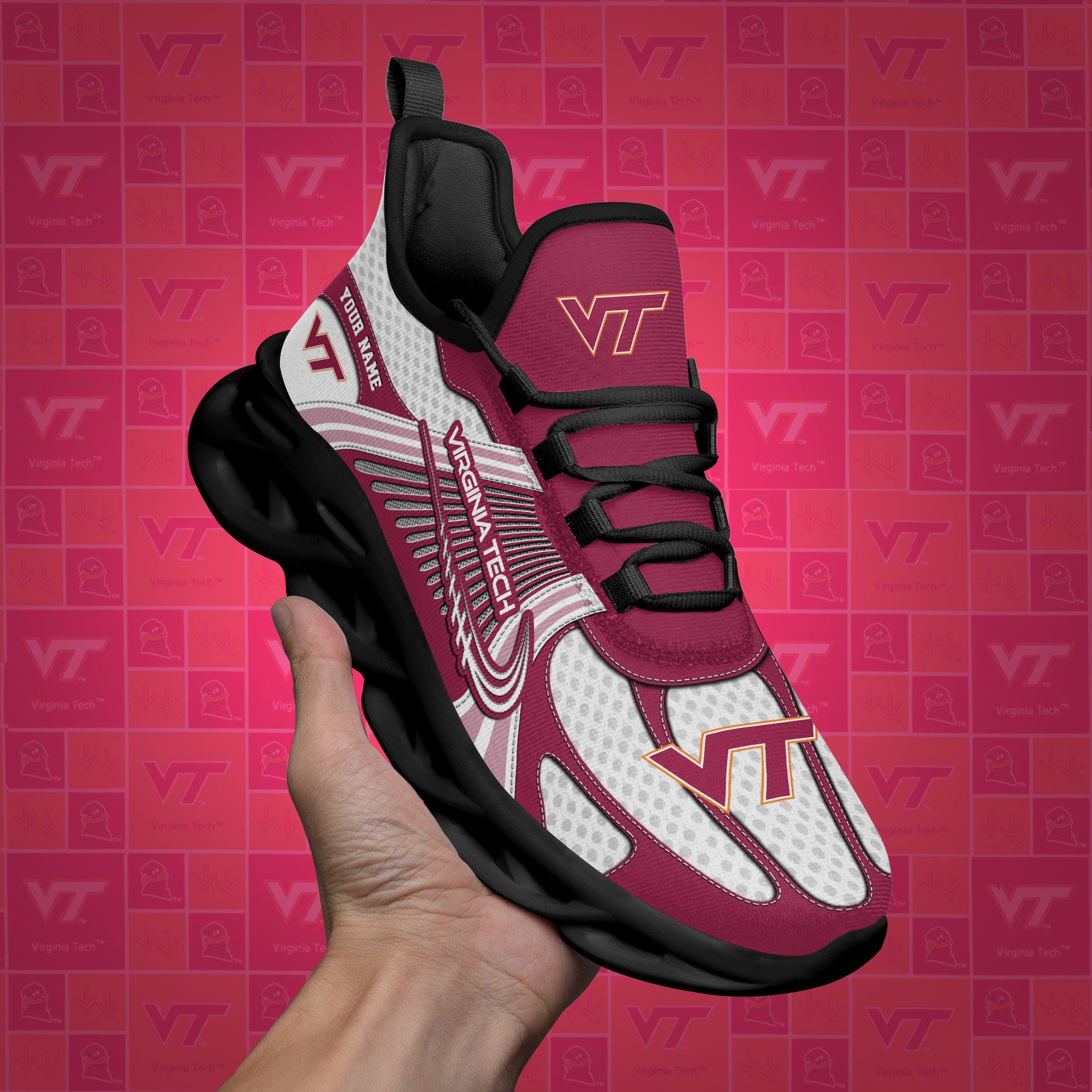 Virginia Tech Hokies Clunky Sneakers Custom Your Name, Sport Sneakers, Sport Gifts For Fan, Gifts For Him