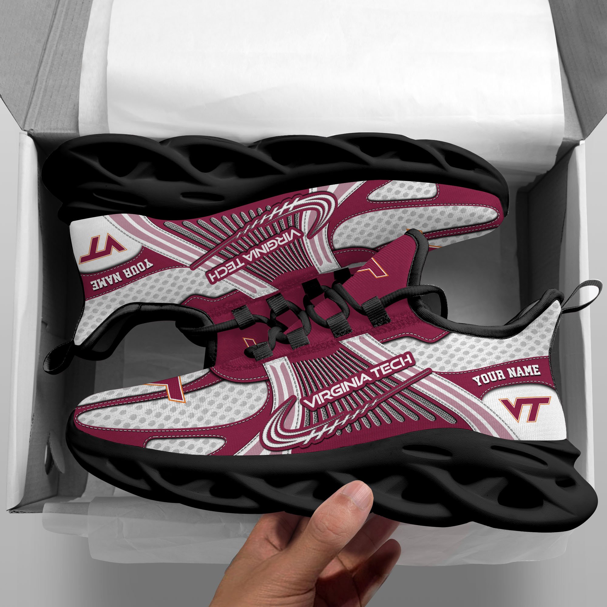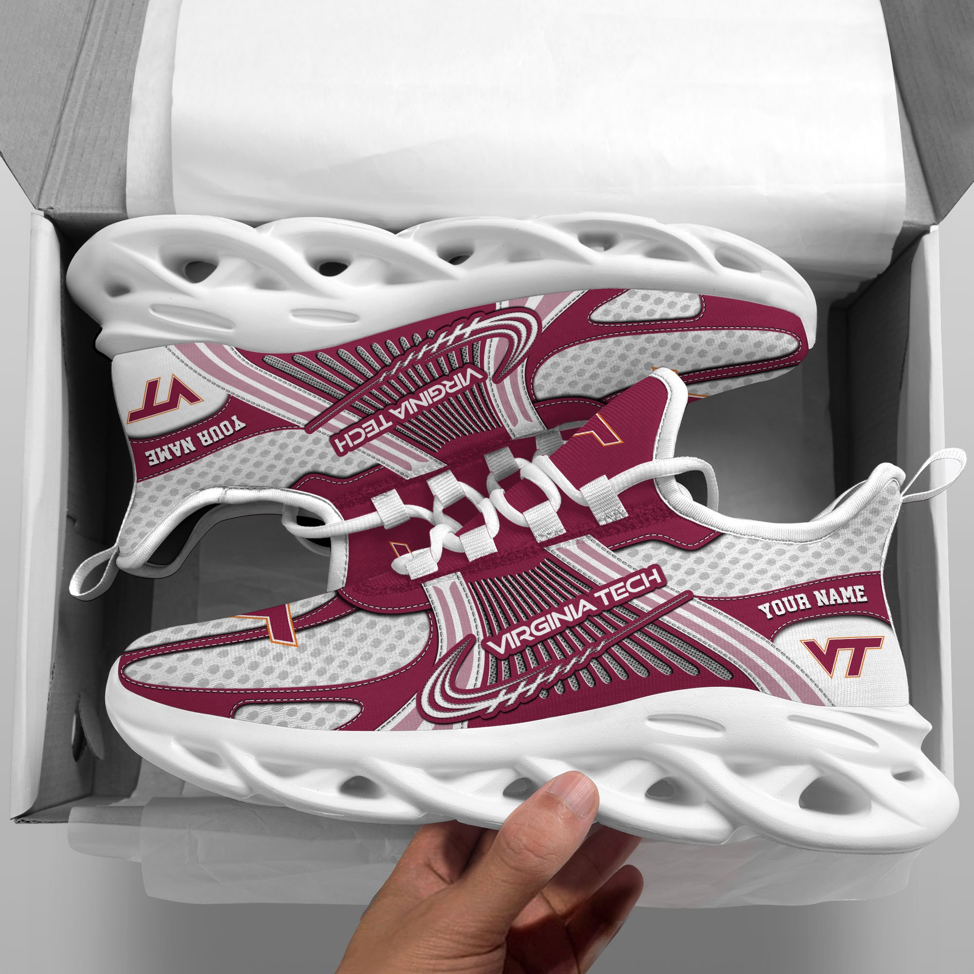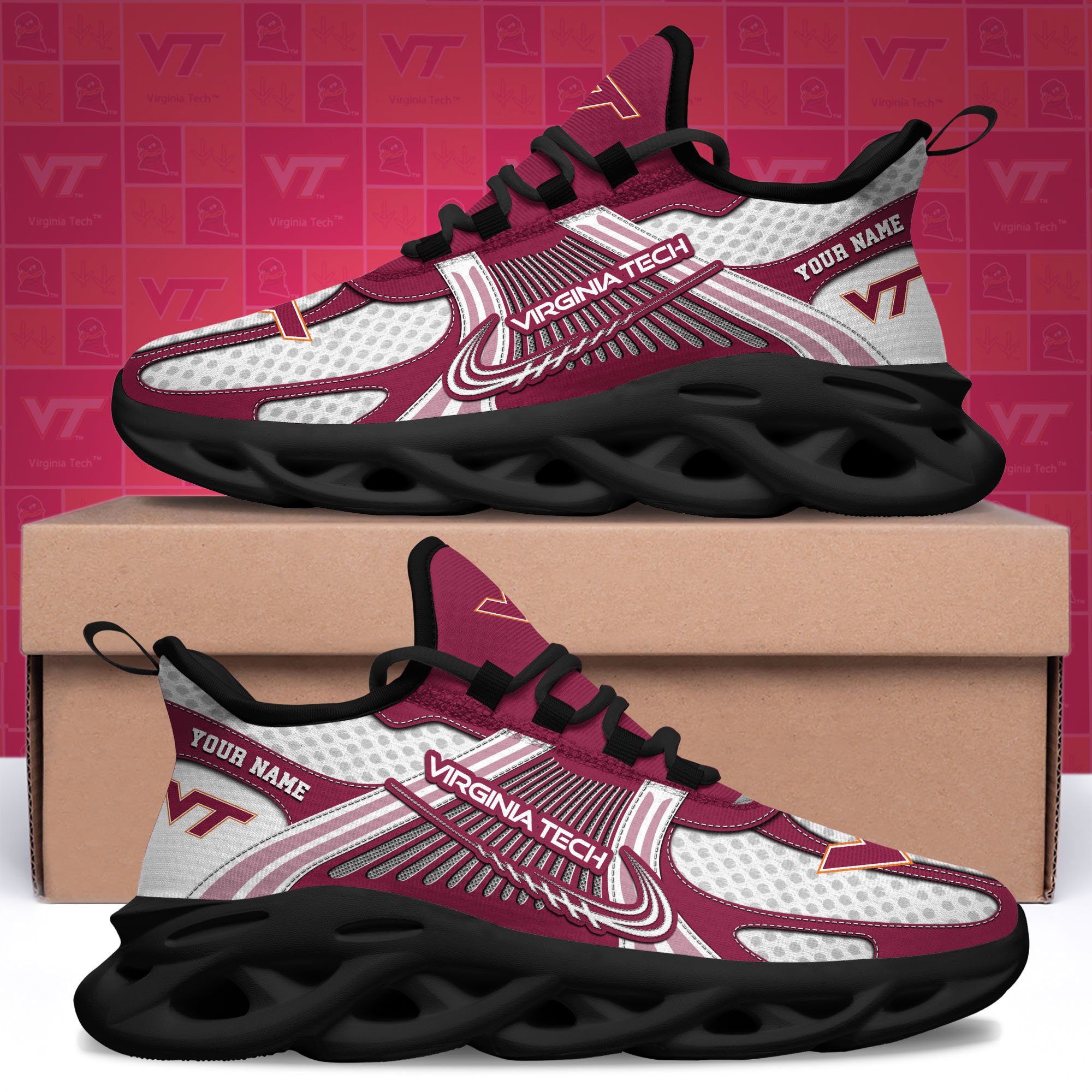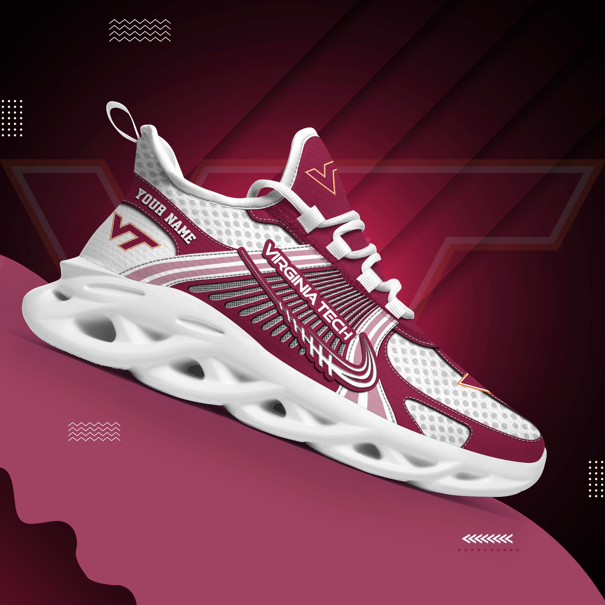 Virginia Tech Hokies Clunky Sneakers Custom Your Name, Sport Sneakers, Sport Gifts For Fan, Gifts For Him