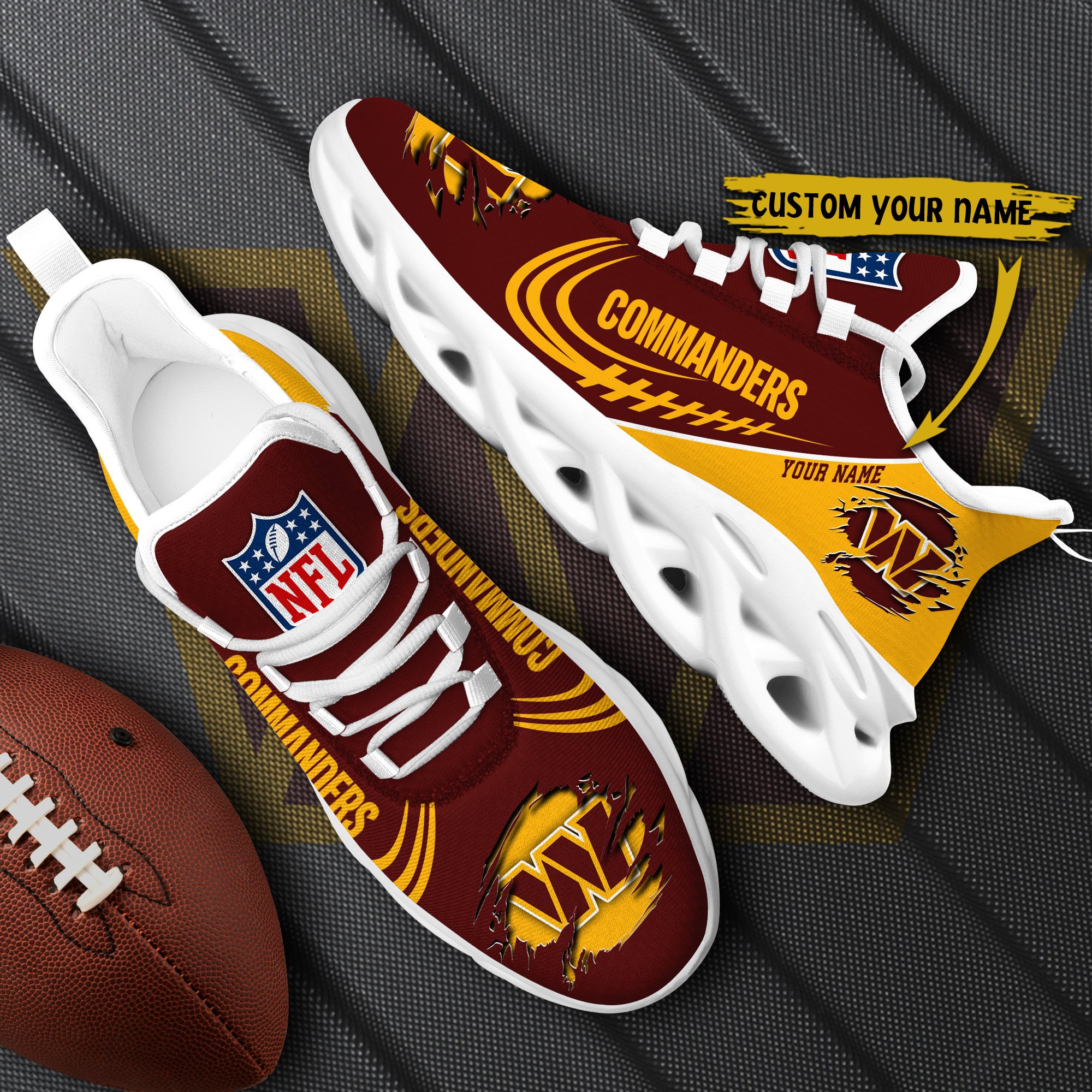 Washington Commanders Black Max Soul Shoes 2026 Versions Custom Name 003