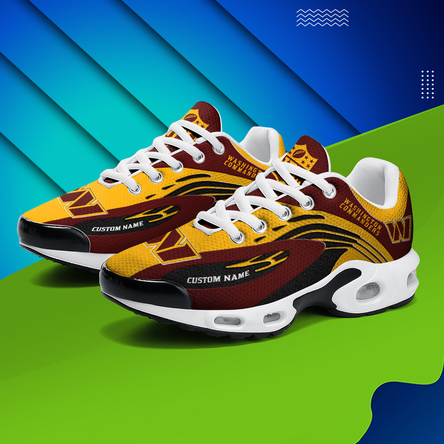 Washington Commanders Personalized Name Team Logo Mix Colors Wave Line TN Shoes Air Cushion Sneakers