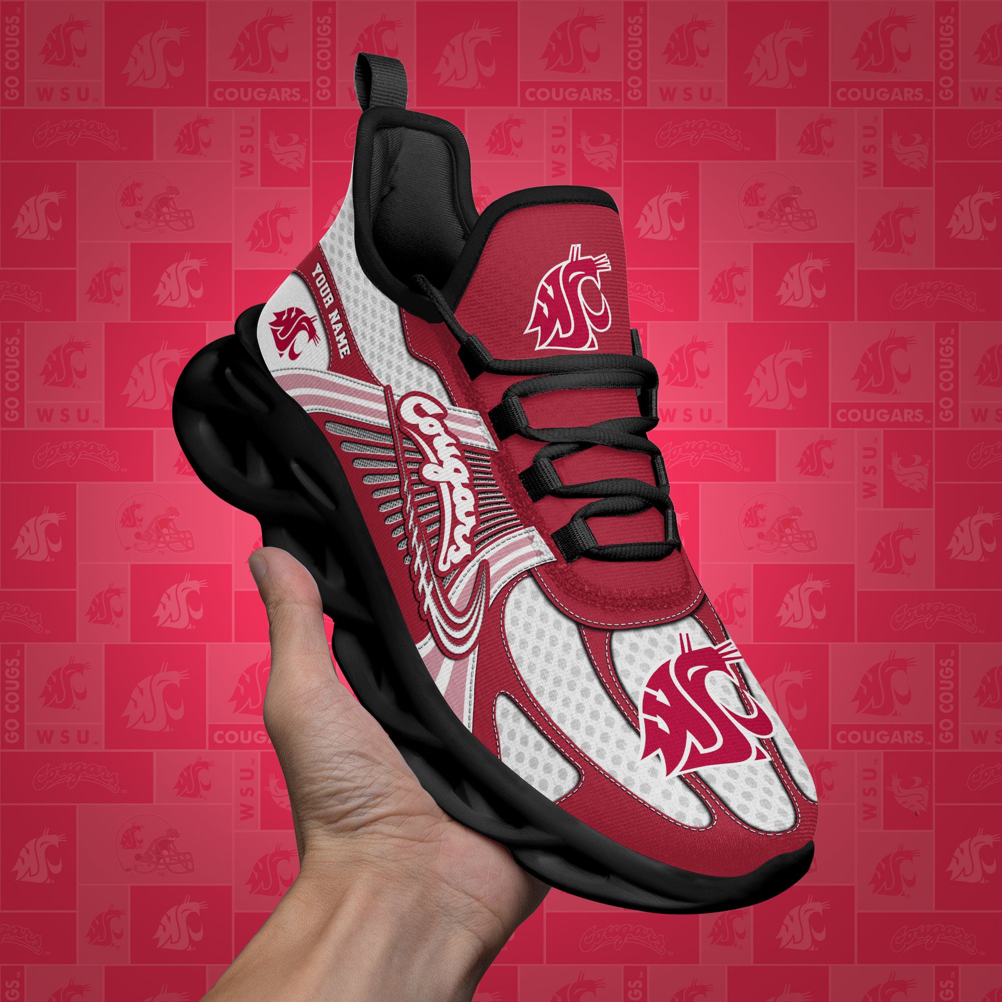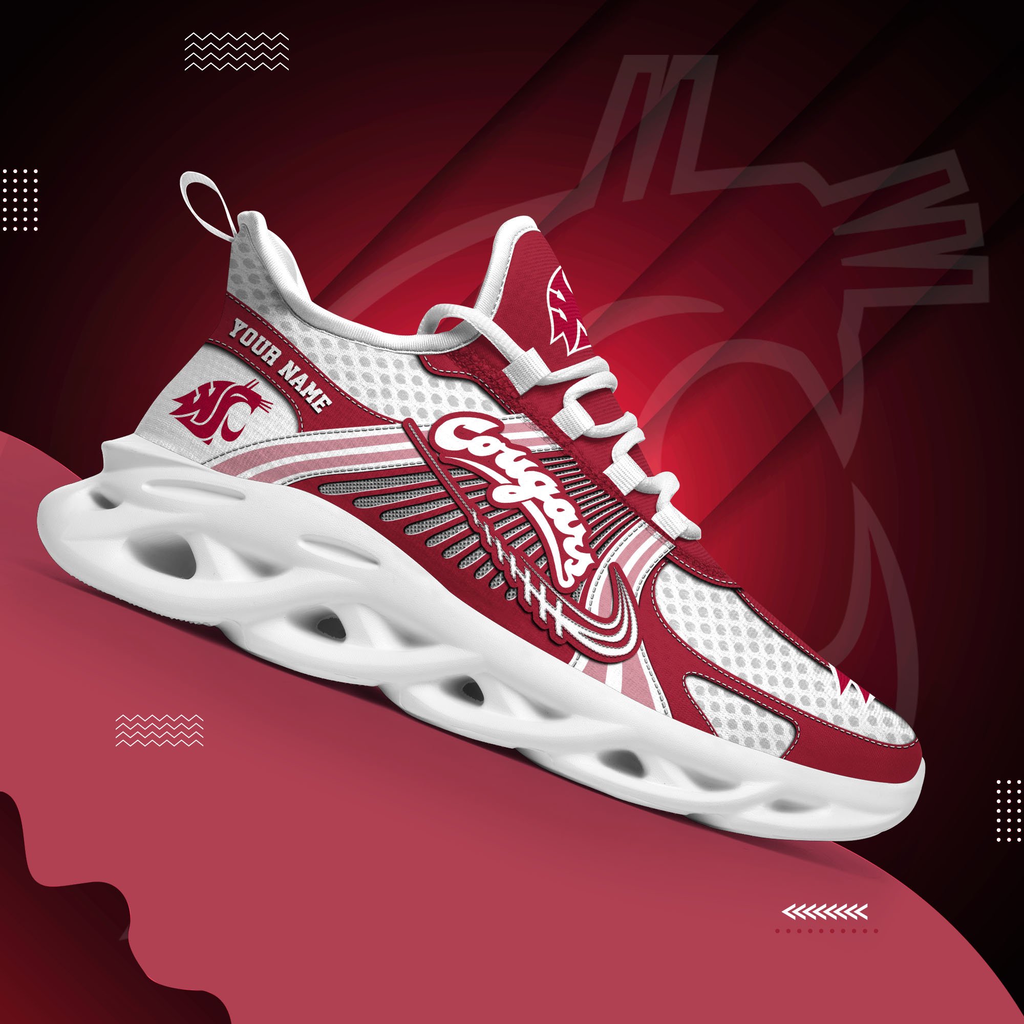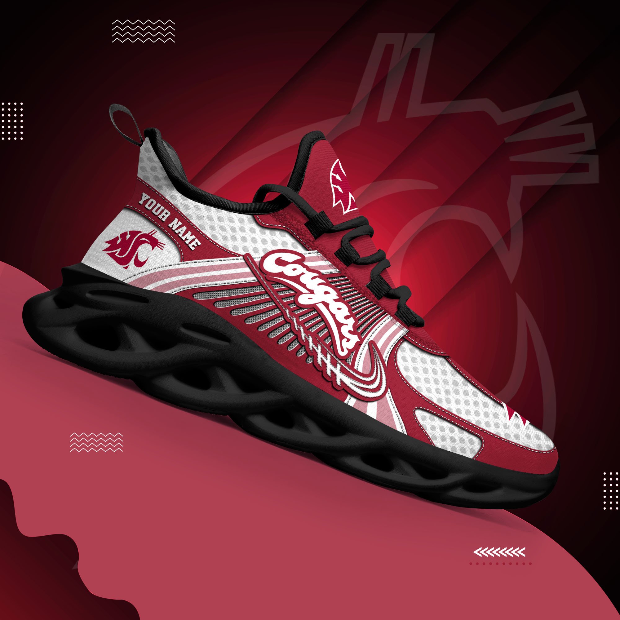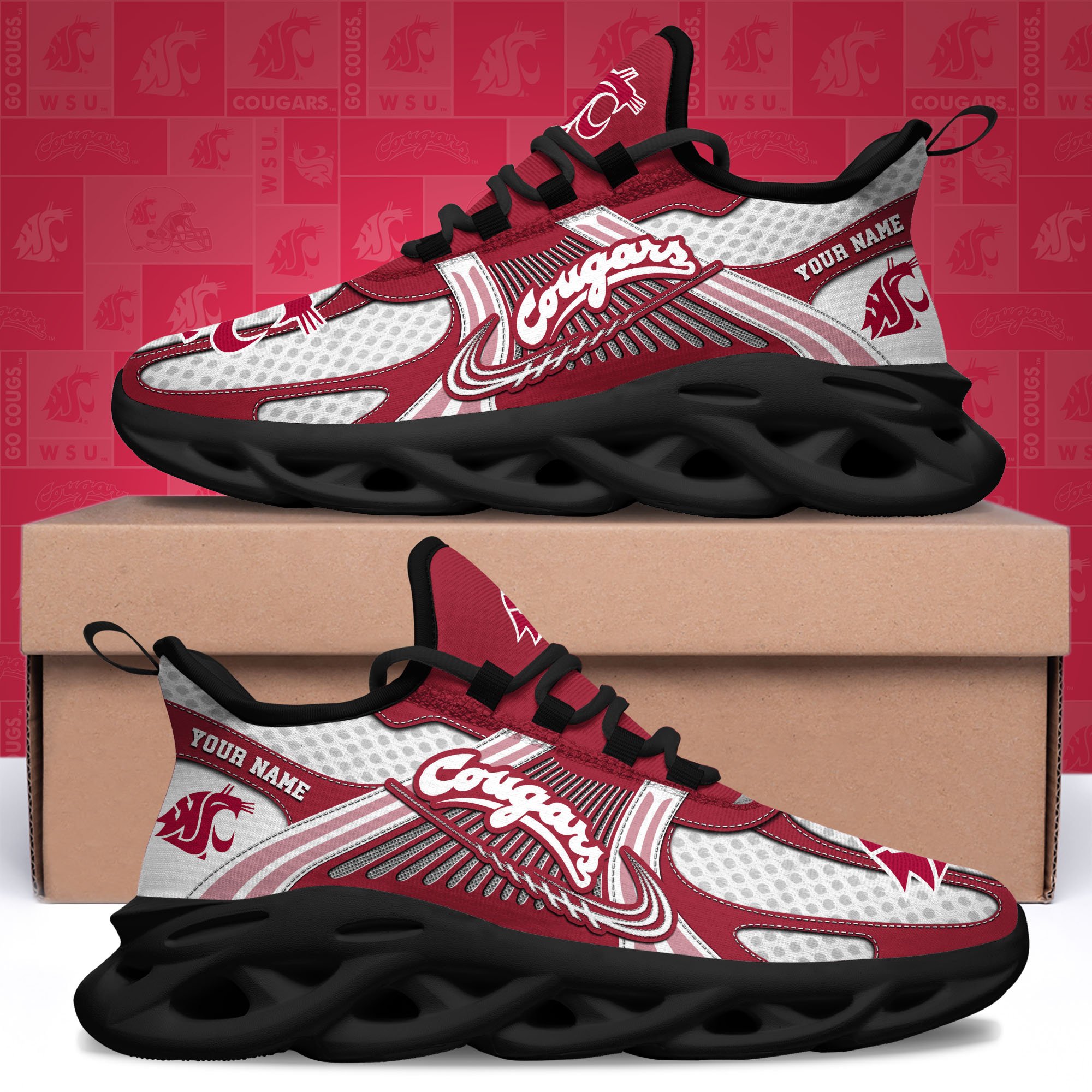 Washington State Cougars Clunky Sneakers Custom Your Name, Sport Sneakers, Sport Gifts For Fan, Gifts For Him