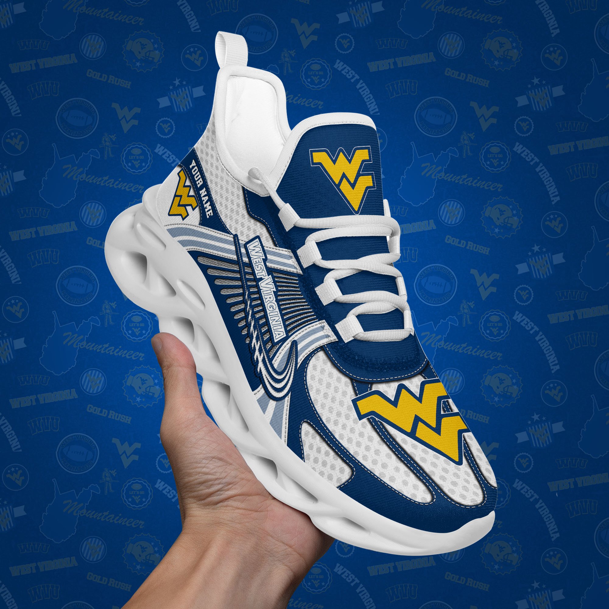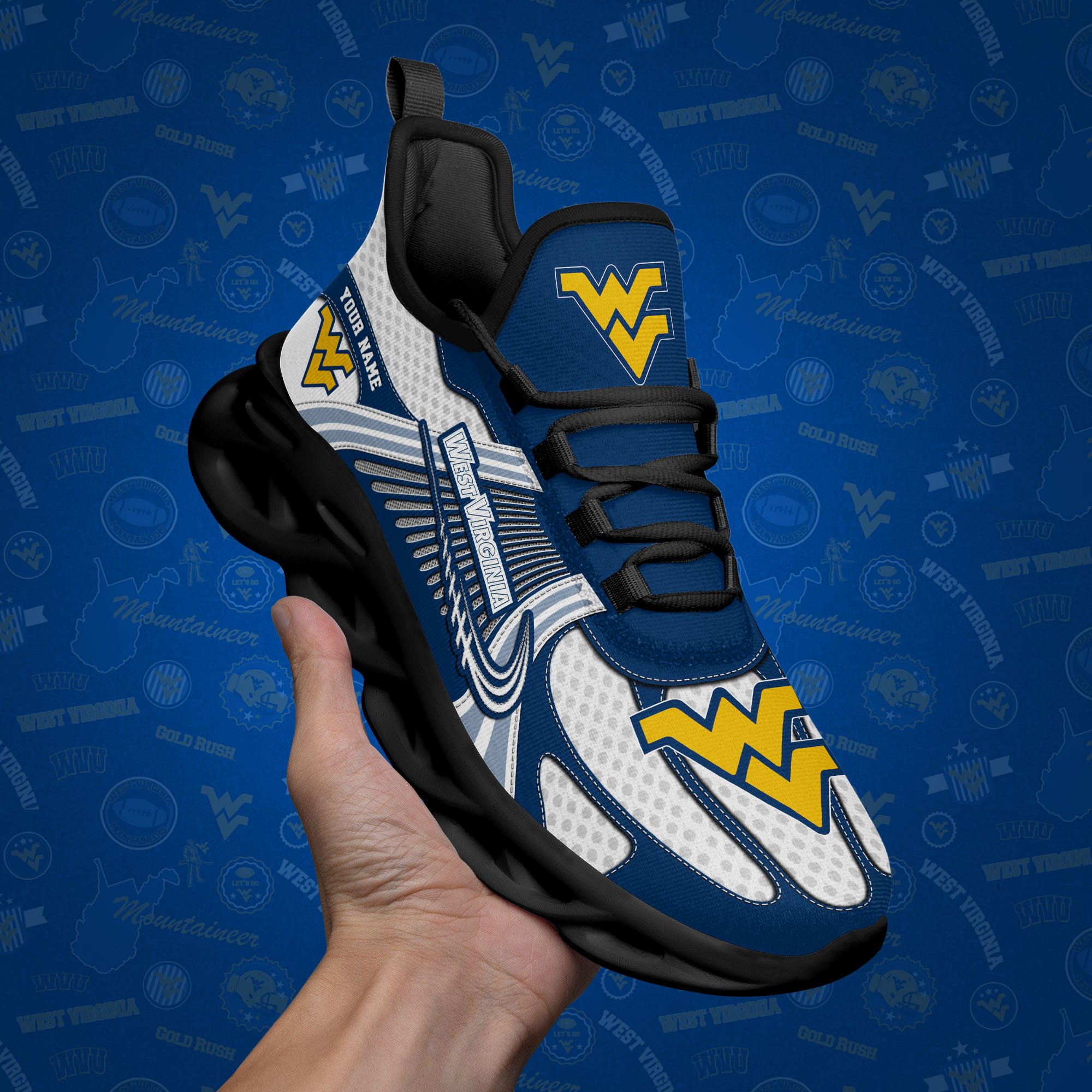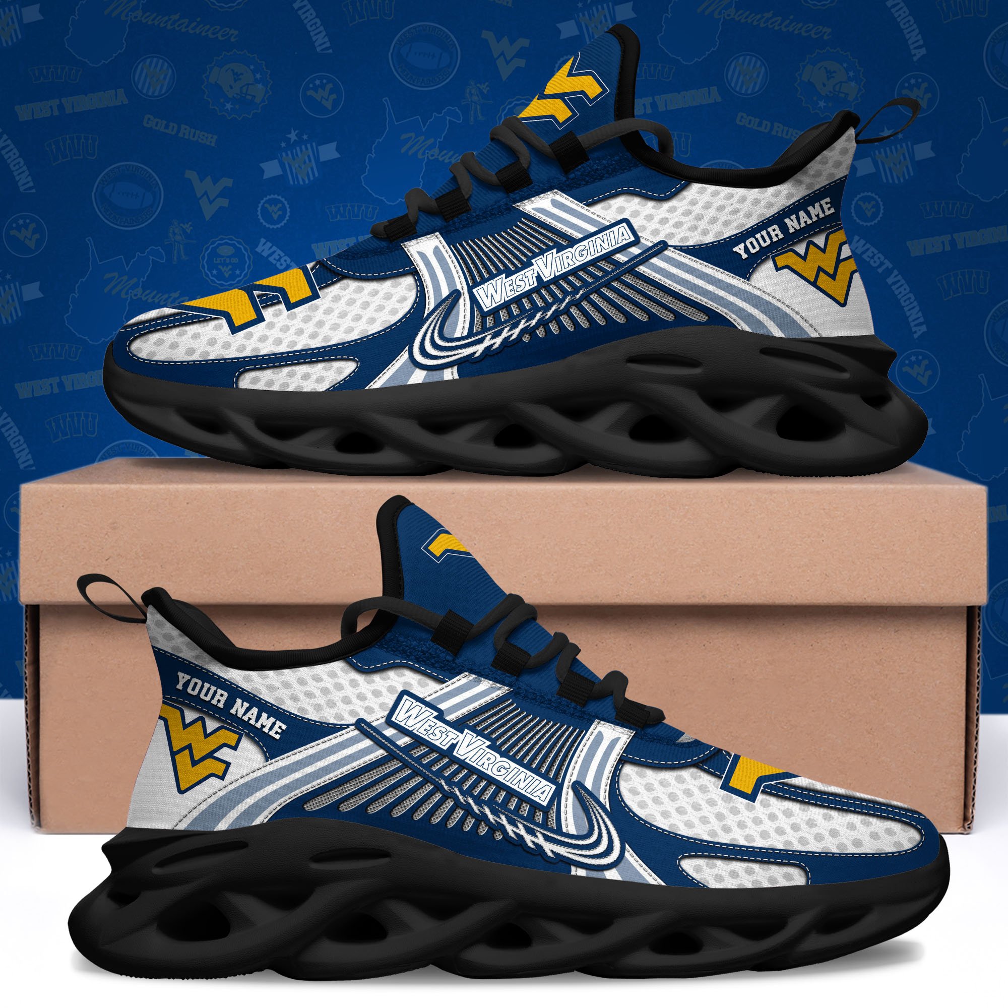 West Virginia Mountaineers Clunky Sneakers Custom Your Name, Sport Sneakers, Sport Gifts For Fan, Gifts For Him