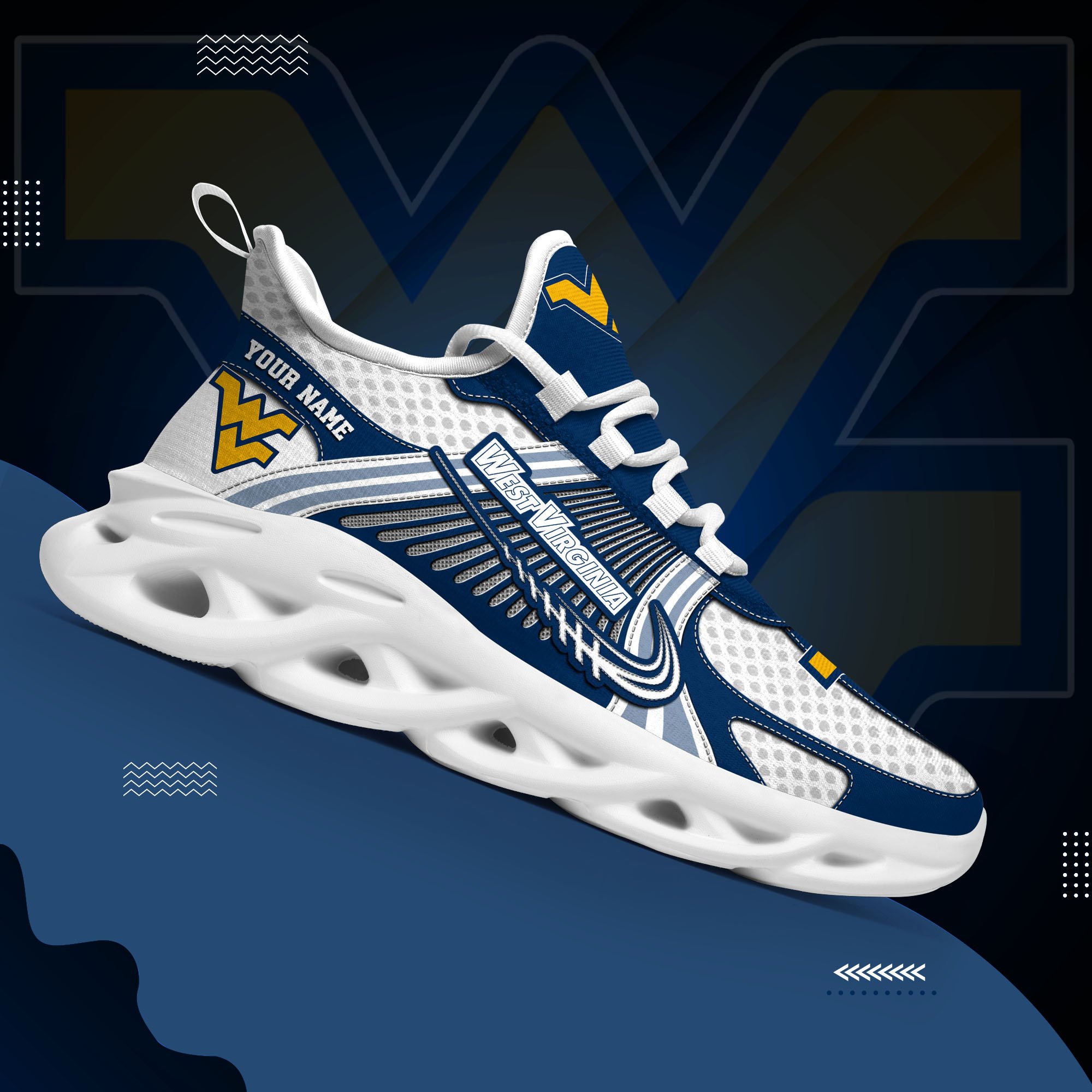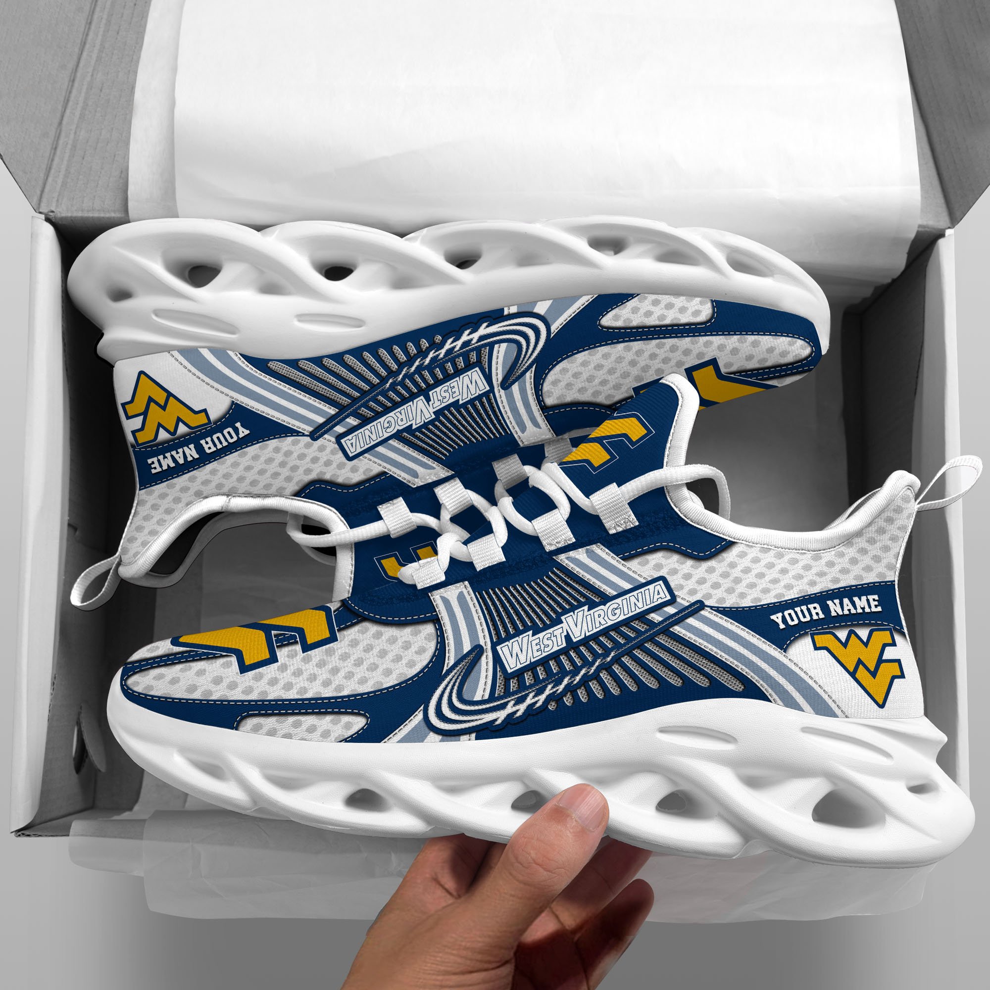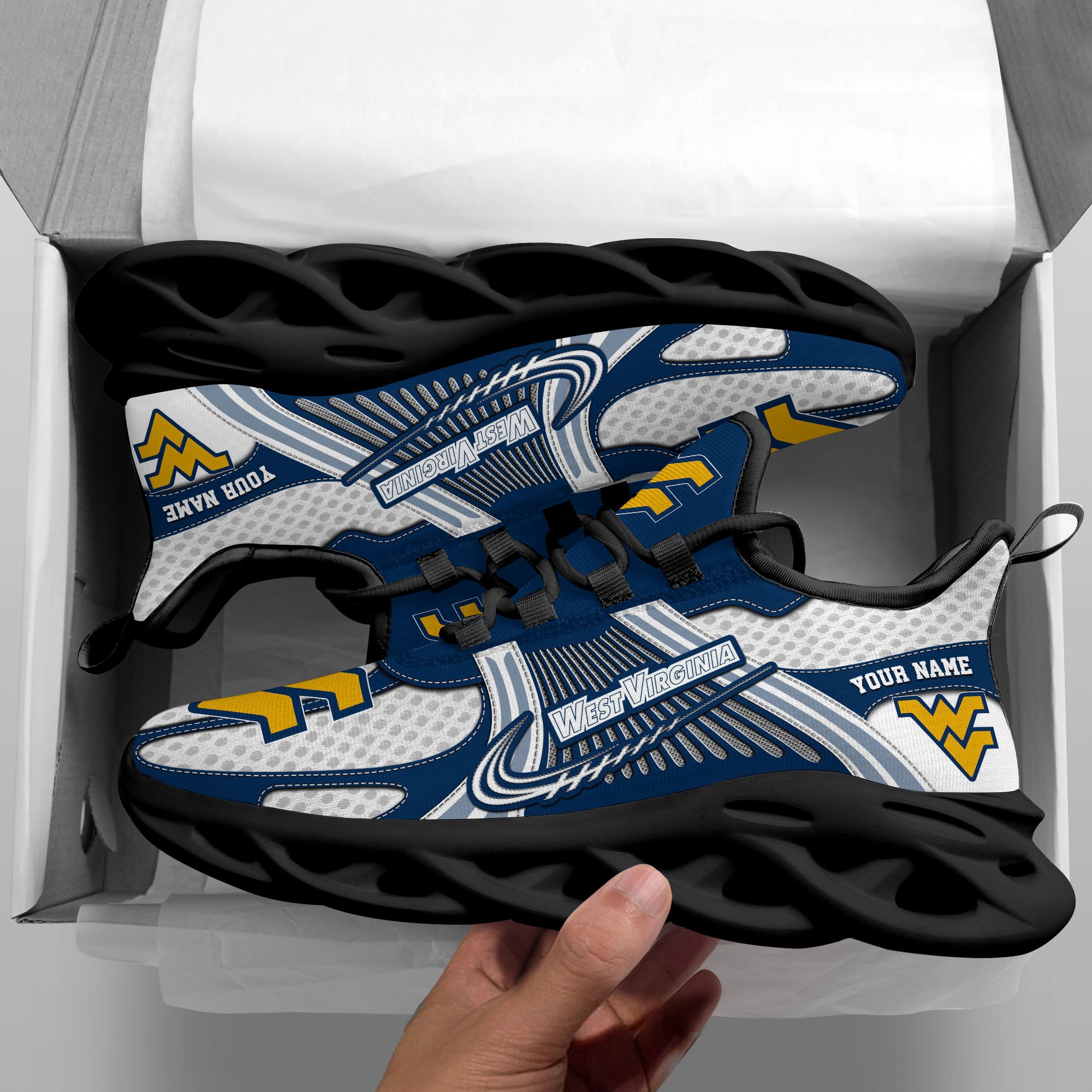 West Virginia Mountaineers Clunky Sneakers Custom Your Name, Sport Sneakers, Sport Gifts For Fan, Gifts For Him