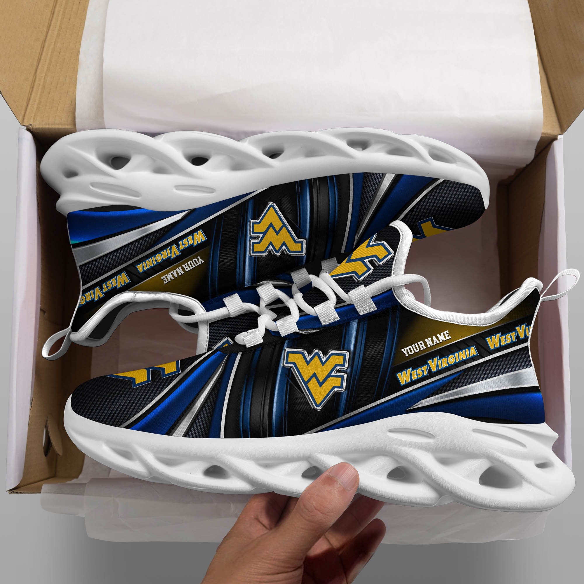 West Virginia Mountaineers White C Sneakers 2026 Version Personalized Your Name, Sport Team Sneakers, Sport Gifts PH892
