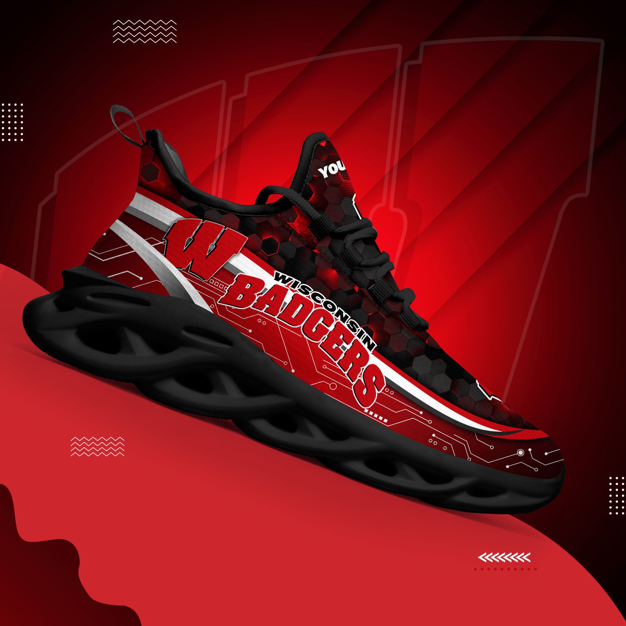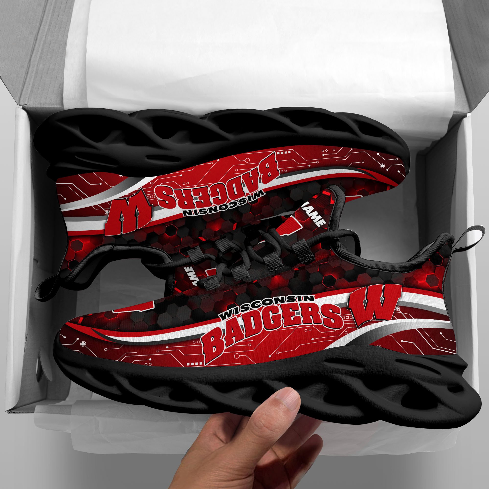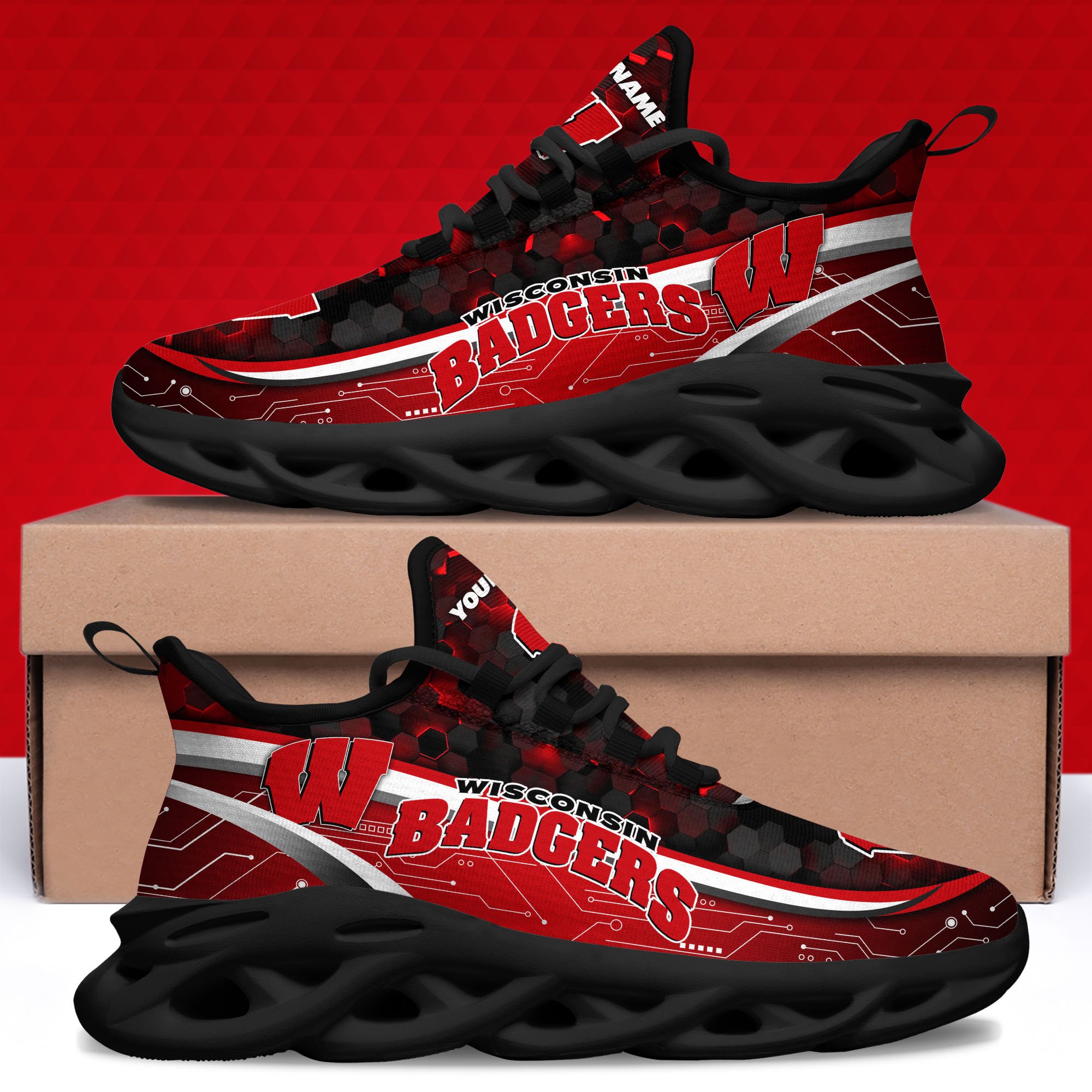 Wisconsin Badgers Black Clunky Sneakers Custom Name, Max Soul Shoes, Sport Gifts